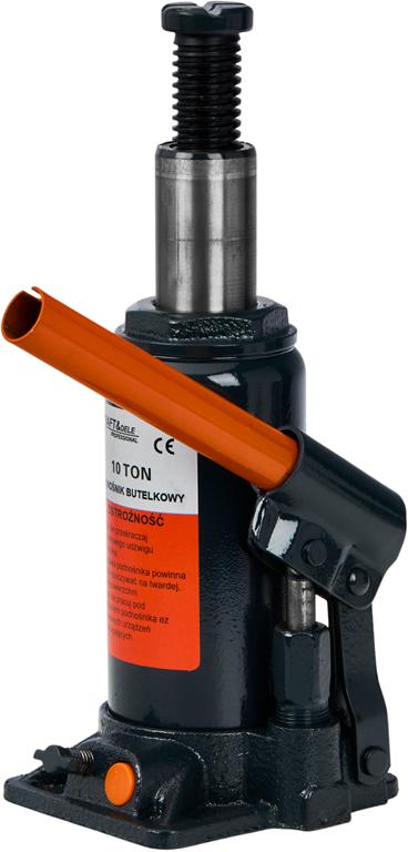 Hydrauliczny podnośnik butelkowy o konstrukcji słupkowej, przeznaczony do unoszenia ciężarów do 10 ton. Zastosowany system zaworów precyzyjnie dozuje olej hydrauliczny, zapewniając płynną i kontrolowaną pracę nawet przy maksymalnym obciążeniu. Urządzenie stosowane w warsztatach samochodowych, stacjach obsługi pojazdów oraz wszędzie tam, gdzie wymagane jest generowanie dużej siły pionowej na ograniczonej przestrzeni.