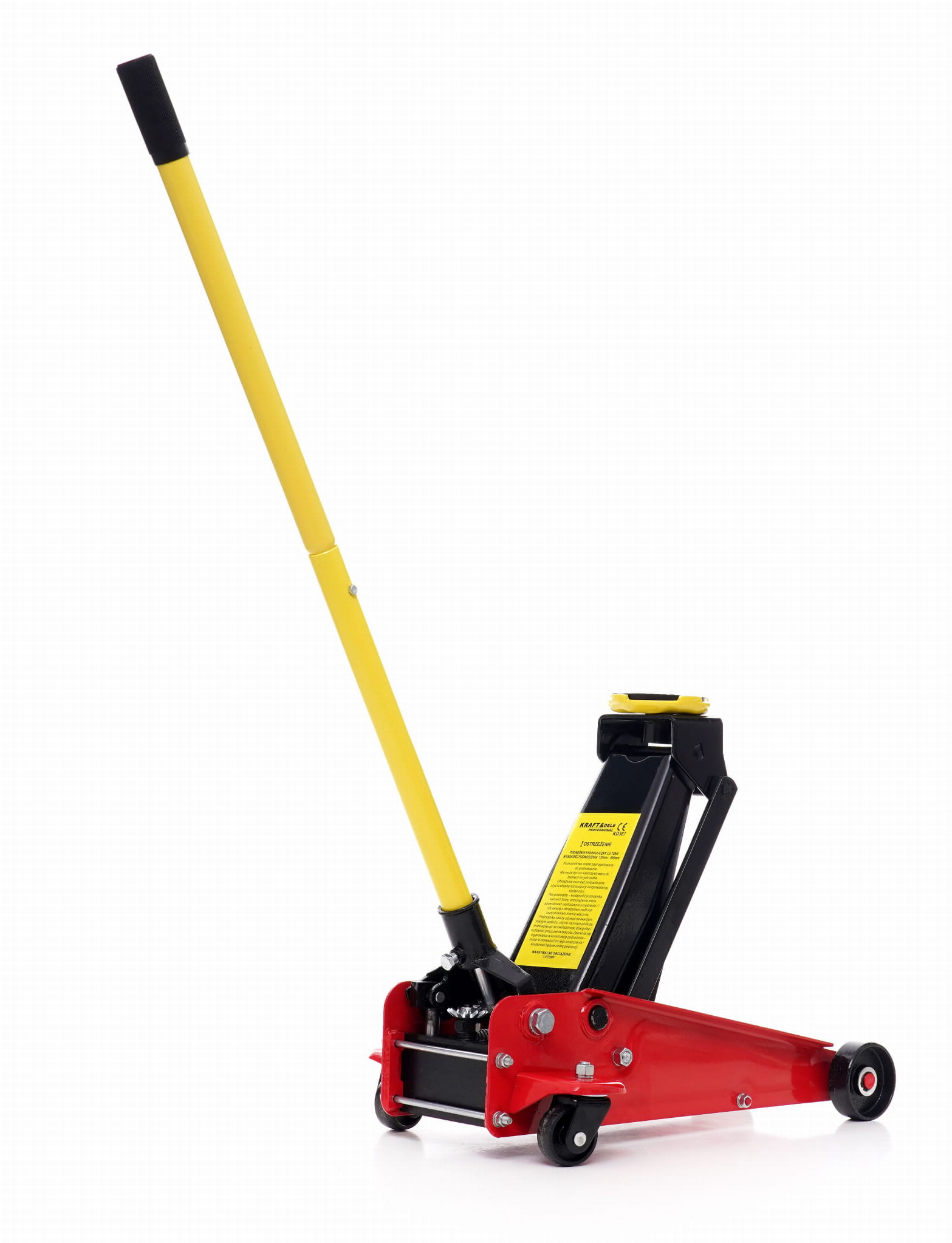 Przed każdym użyciem należy sprawdzić poziom oleju hydraulicznego oraz upewnić się, że zawór spustowy jest szczelnie zamknięty. Podnośnik należy ustawiać wyłącznie na twardym, równym i poziomym podłożu. Po uniesieniu pojazdu obowiązkowo stosować podstawki warsztatowe — podnośnik hydrauliczny nie jest urządzeniem przeznaczonym do długotrwałego podtrzymywania pojazdu.