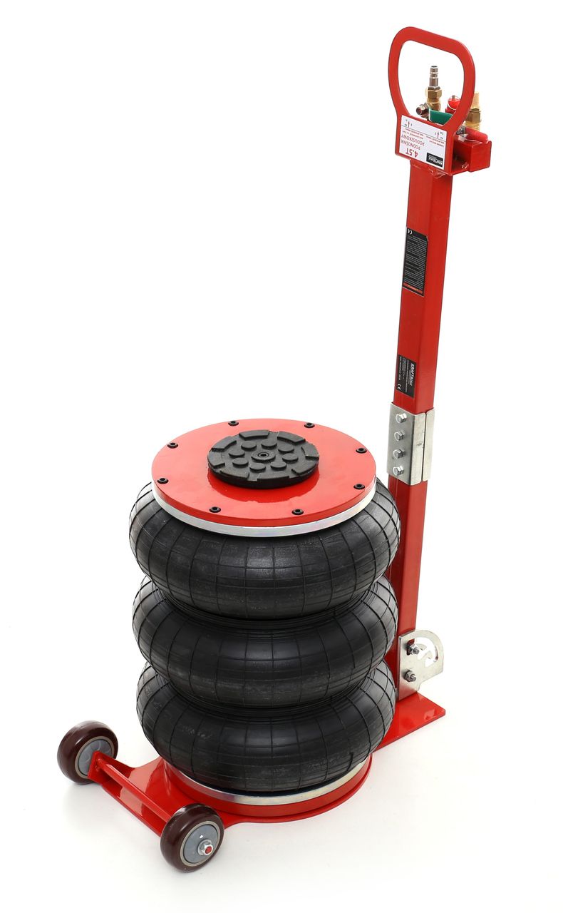 Podnośnik hydrauliczny typu bałwanek przeznaczony do unoszenia pojazdów osobowych, dostawczych oraz lekkich ciężarowych. Charakteryzuje się kompaktową budową i szerokim zakresem podnoszenia, co pozwala na pracę zarówno przy pojazdach niskopodwoziowych, jak i wyżej zawieszonych. Wyposażony w koła jezdne, które ułatwiają przemieszczanie urządzenia w warunkach warsztatowych i garażowych.