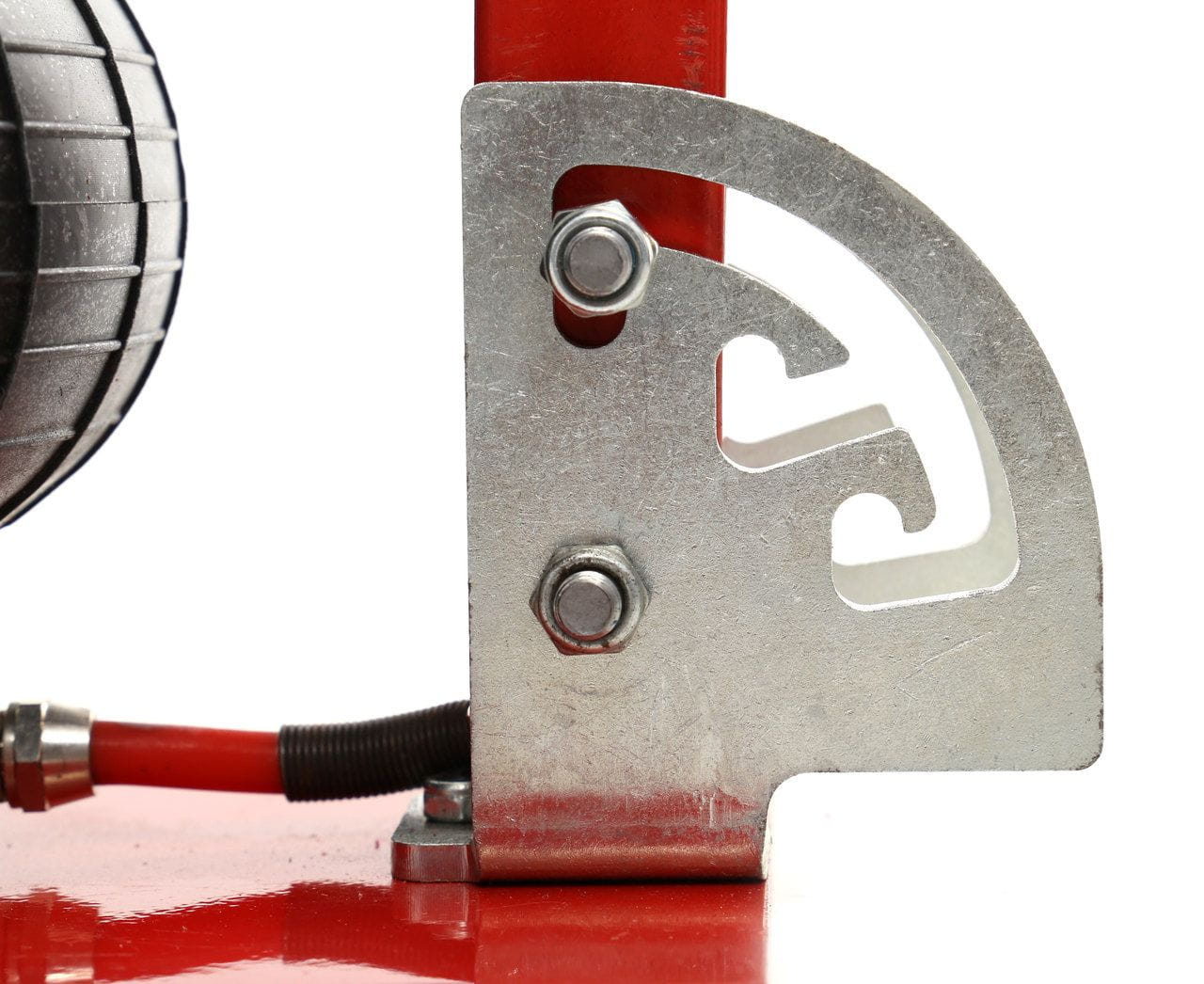 Masywna stalowa konstrukcja zapewnia stabilność podczas pracy pod obciążeniem. Niewielkie gabaryty urządzenia ułatwiają przechowywanie w bagażniku samochodu lub szafce warsztatowej, co czyni podnośnik przydatnym zarówno w warsztacie, jak i w trasie.