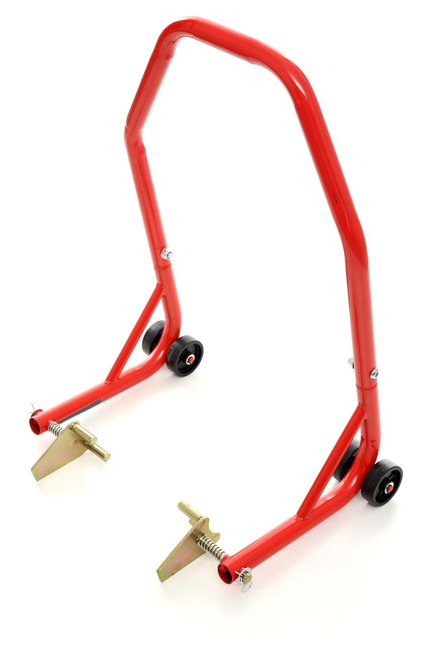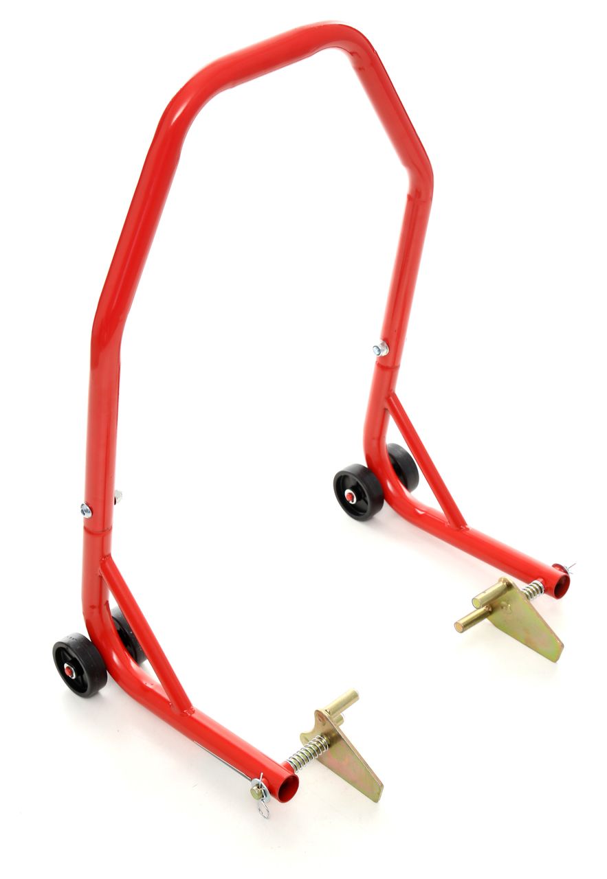 Podnośnik motocyklowy przedni pozwala ustawić maszynę w pozycji, w której łatwiej wykonać czynności przy przodzie motocykla.