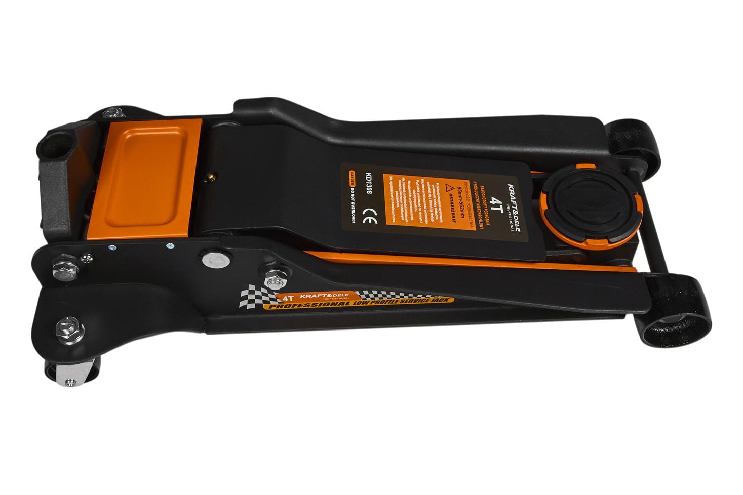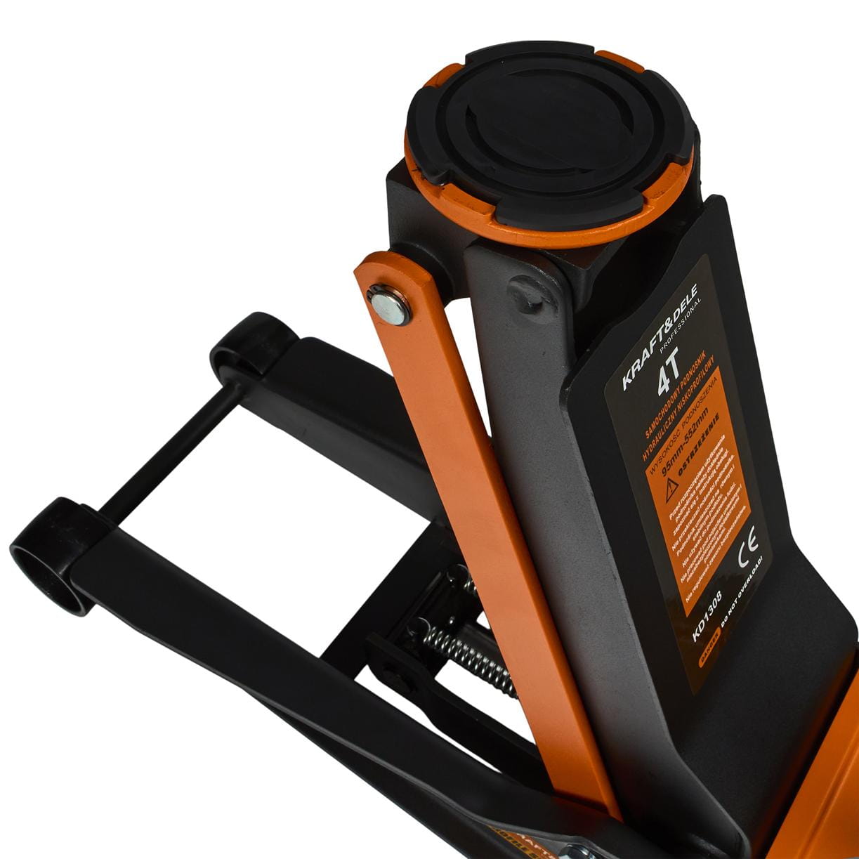 Zakres 95–552 mm (różnica 457 mm) umożliwia uniesienie pojazdu na wysokość wystarczającą do wygodnej pracy pod spodem — wymiany kół, oleju, elementów układu hamulcowego czy zawieszenia — bez konieczności dodatkowego podparcia na niskich podstawkach.