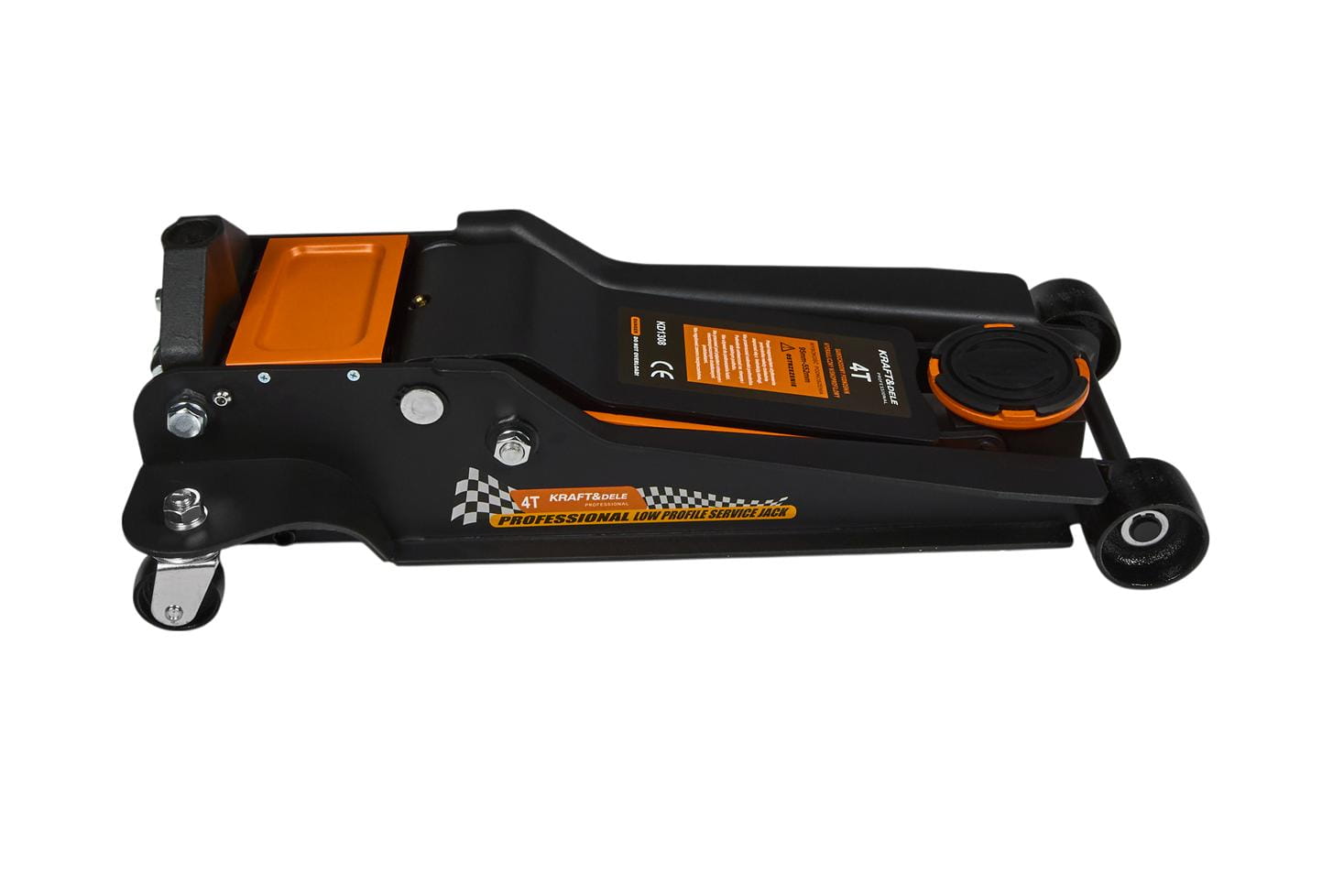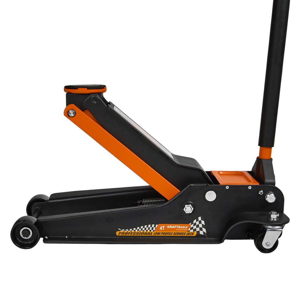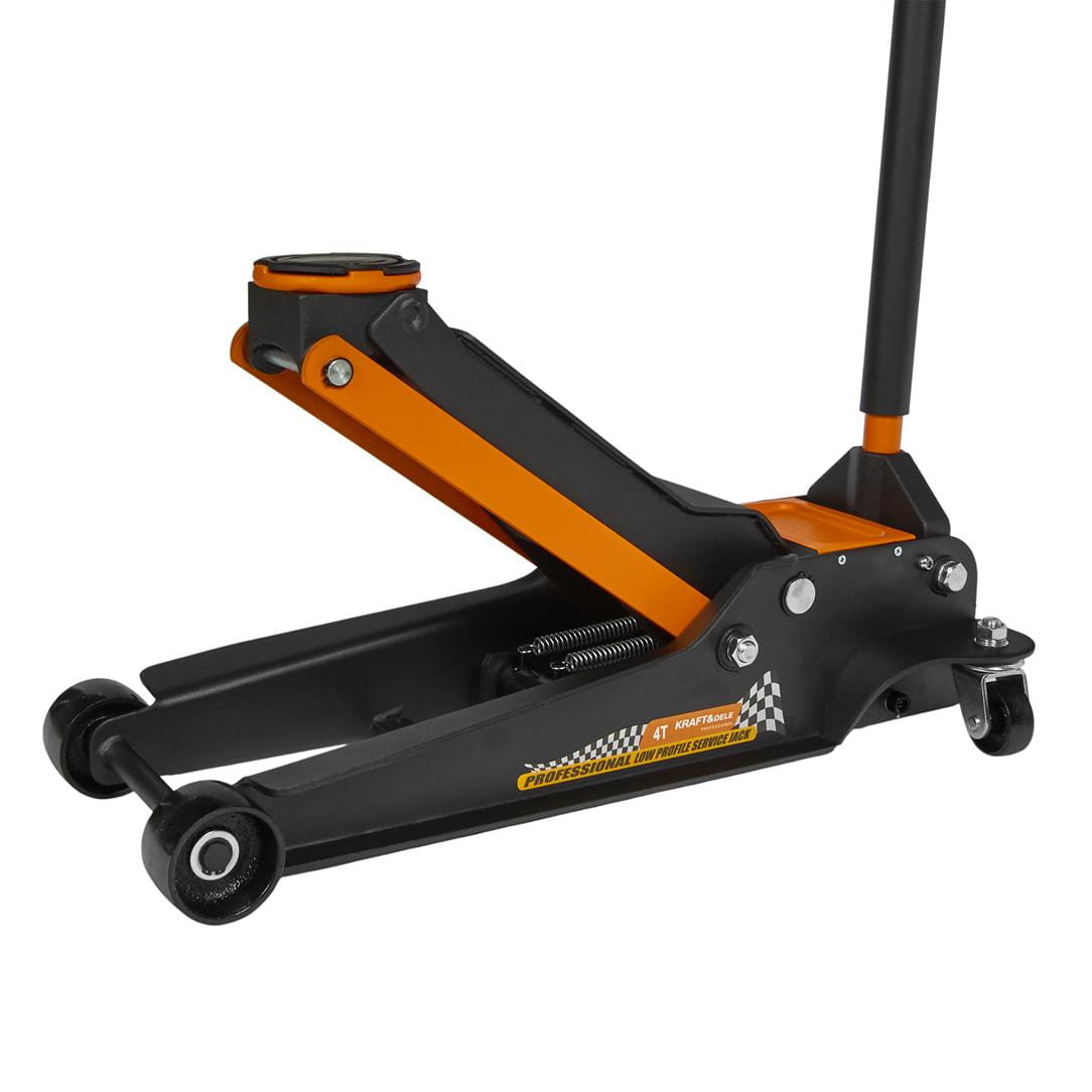 Hydrauliczny podnośnik podłogowy typu żaba o udźwigu 4000 kg, przeznaczony do warsztatów samochodowych i użytku garażowego. Niskoprofilowa konstrukcja umożliwia podjazd pod pojazdy o obniżonym prześwicie, a szeroki zakres podnoszenia pozwala na obsługę zarówno aut osobowych, jak i dostawczych.
