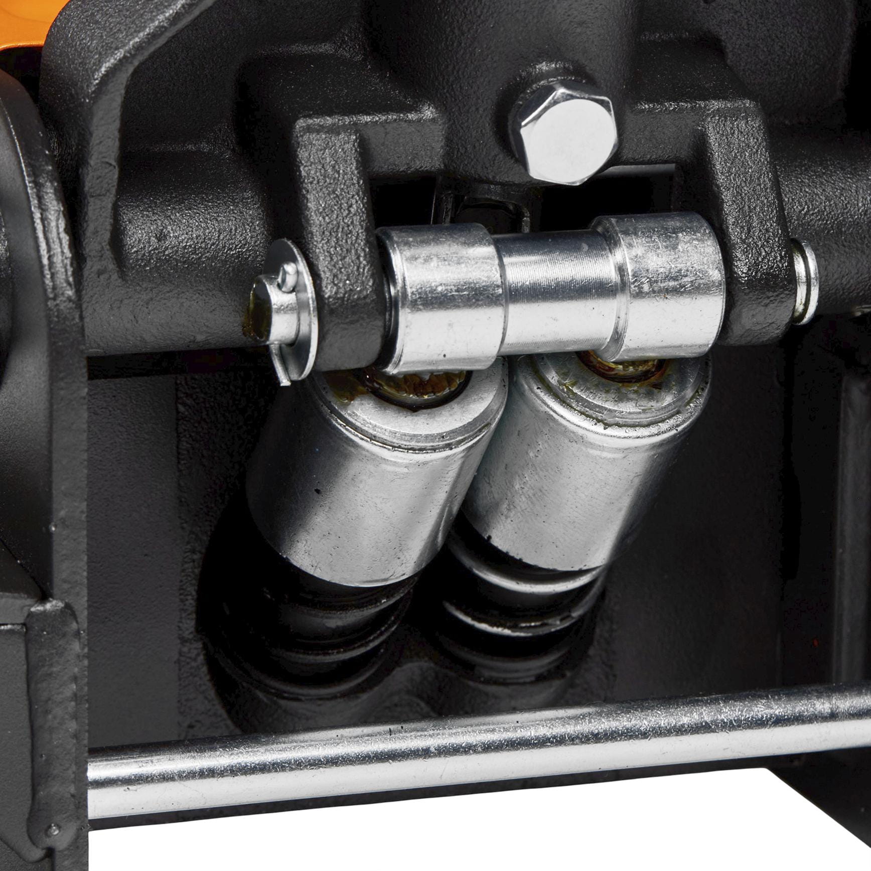 Zestaw kółek umożliwia swobodne przemieszczanie podnośnika po podłodze garażu lub warsztatu — zarówno przy pozycjonowaniu przed podniesieniem, jak i przy odkładaniu urządzenia na miejsce przechowywania.