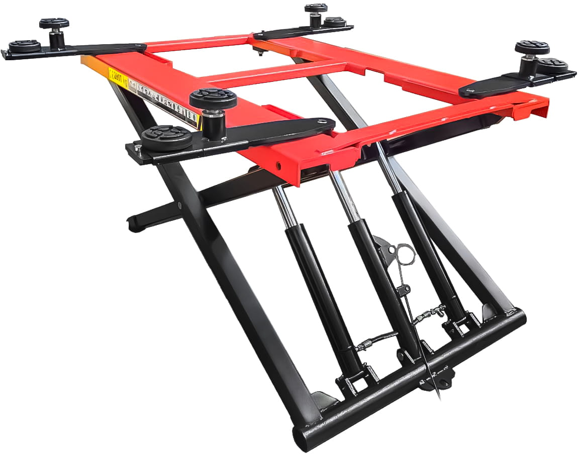KD5824 to elektryczny podnośnik nożycowy o nośności 2800 kg, przeznaczony do podnoszenia samochodów osobowych i dostawczych w warunkach warsztatowych oraz garażowych. Zasilany jednofazowym napięciem 230V, wyposażony w skrzynkę sterującą i wyłącznik bezpieczeństwa. Maksymalna wysokość podnoszenia 1200 mm zapewnia swobodny dostęp do podwozia pojazdu podczas prac serwisowych.