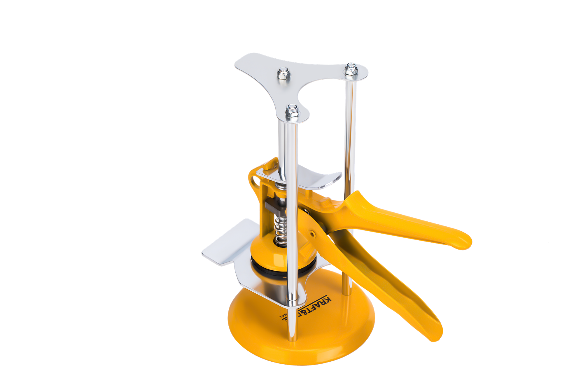Narzędzie do precyzyjnego pozycjonowania płyt ceramicznych, szklanych, marmurowych oraz wielkoformatowych okładzin podczas montażu. Stalowa konstrukcja o masie 0,65 kg umożliwia ręczną regulację wysokości w zakresie 1–10 cm przy maksymalnym obciążeniu 110 kg.