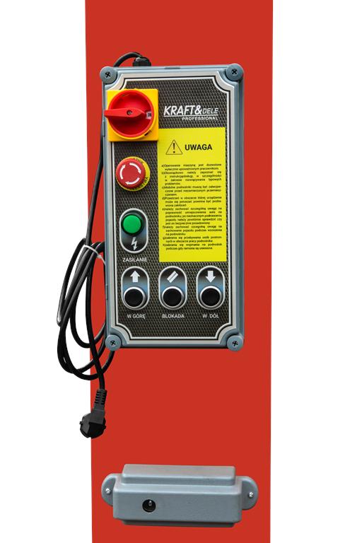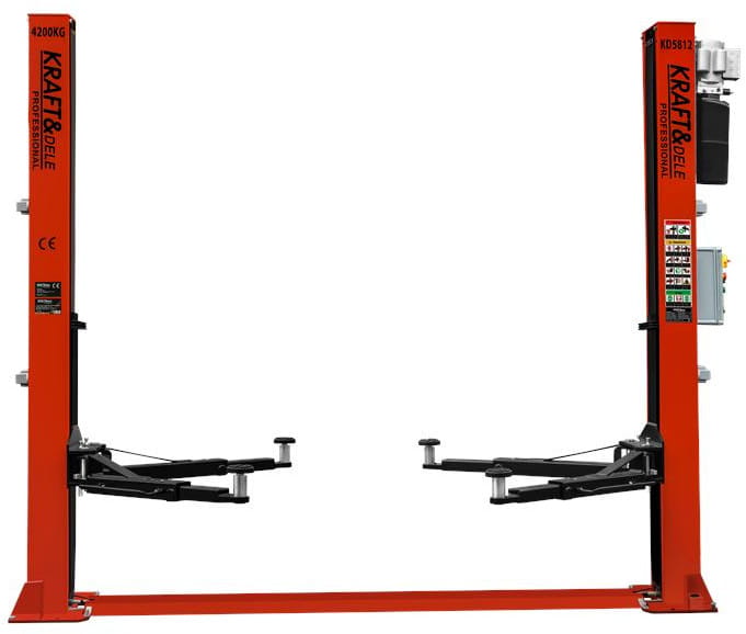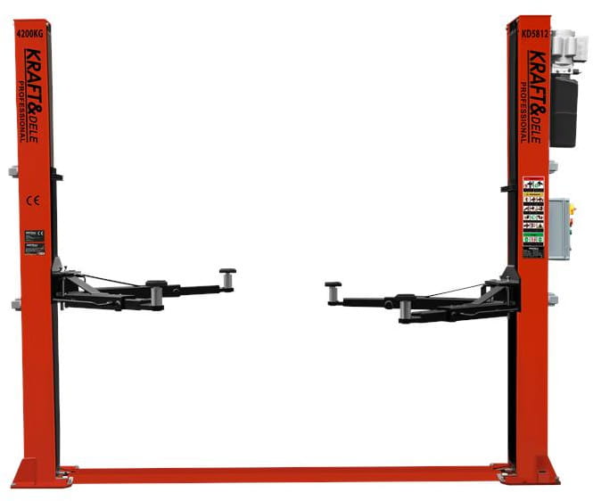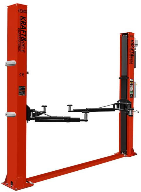 Dwukolumnowy podnośnik hydrauliczny przeznaczony do profesjonalnych zastosowań warsztatowych. Obsługuje pojazdy o masie do 4200 kg, pracuje na zasilaniu jednofazowym 230V i wyposażony jest w asymetryczne ramiona z regulowaną długością oraz układy zabezpieczające operatora i pojazd.