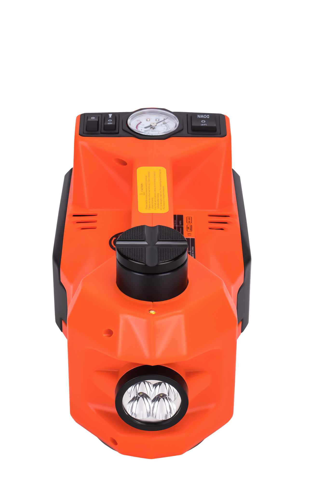 Przednia lampa LED oświetla przestrzeń pod pojazdem, co ułatwia precyzyjne ustawienie podnośnika w punkcie podparcia. Tylne czerwone światło ostrzegawcze zwiększa widoczność zestawu dla innych uczestników ruchu podczas pracy przy drodze.