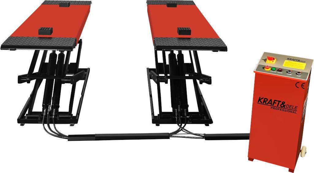 PODNOŚNIK SAMOCHODOWY NOŻYCOWY AUTOMATYCZNY KD5823 / KD5823_2K (KRAFT&DELE) to podnośnik nożycowy KD5823_2K zaprojektowany do profesjonalnych zastosowań warsztatowych: z udźwigiem 3800 kg, zasilaniem 400 V i szybkim cyklem podnoszenia. Jeśli szukasz stabilnego urządzenia do codziennej obsługi serwisowej pod dachem, ten podnośnik nożycowy będzie praktycznym wyborem.