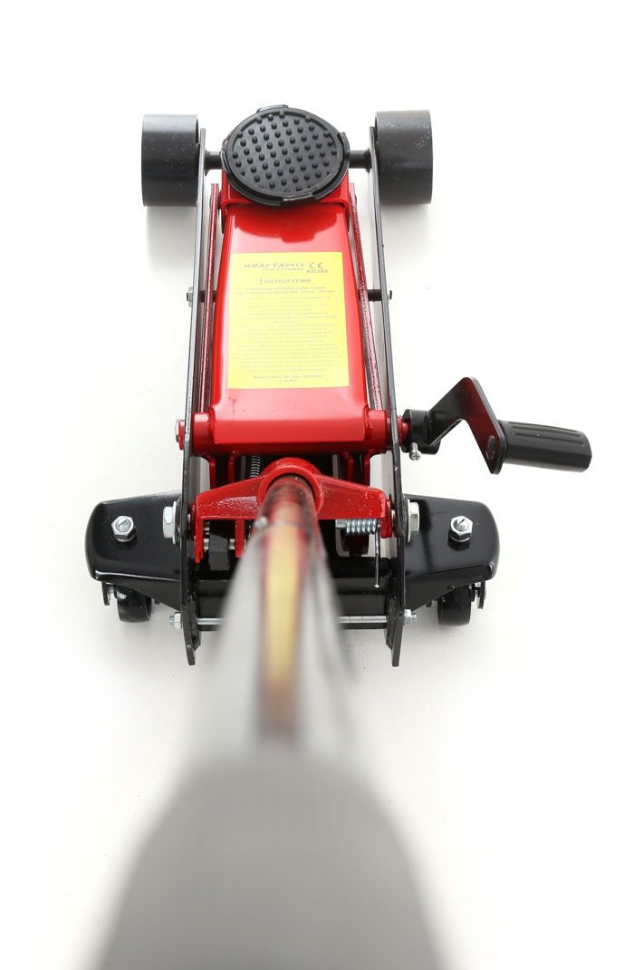 Podnośnik podłogowy KD388 to hydrauliczne urządzenie warsztatowe o udźwigu 3000 kg, przeznaczone do unoszenia samochodów osobowych i dostawczych. Wyposażony w pedał szybkiego podnoszenia, który skraca czas przygotowania pojazdu do pracy w porównaniu z klasycznym pompowaniem ręcznym.