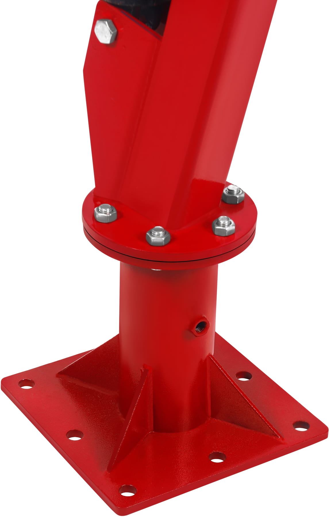 Żuraw wykonany jest ze stali, co zapewnia sztywność ramy przy pracy z dużymi obciążeniami. Konstrukcja przystosowana jest zarówno do montażu na pojeździe (np. na ramie lawety lub skrzyni ładunkowej), jak i do osadzenia na betonowym fundamencie w warsztacie lub magazynie. Waga 21,5 kg ułatwia transport i instalację.