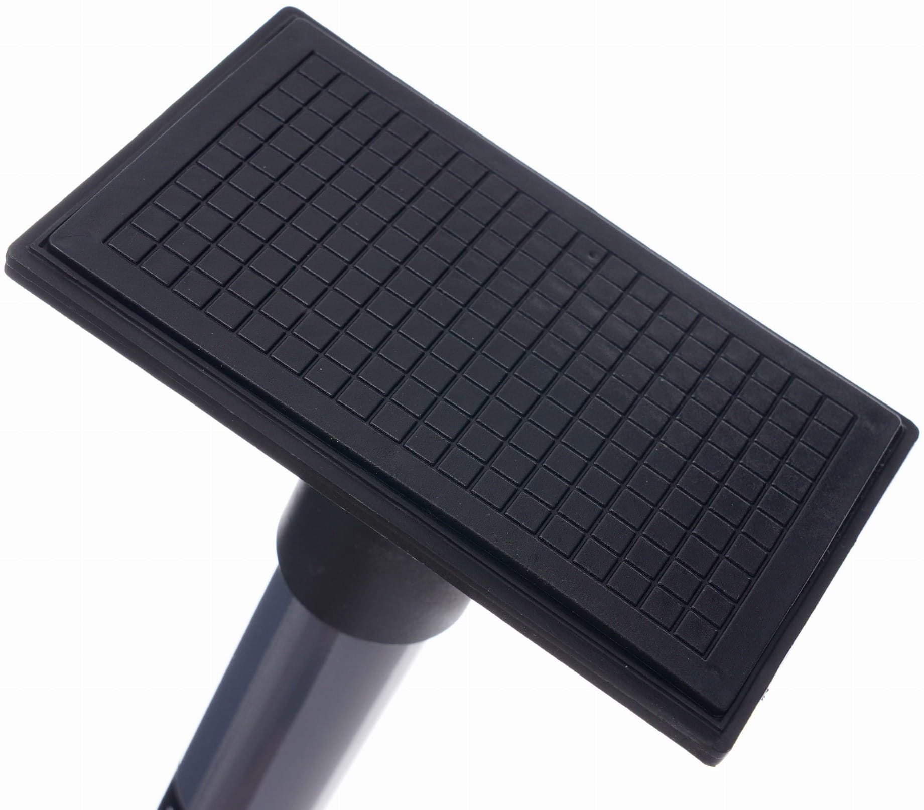 Płynna zmiana wysokości w zakresie 50–115 cm pozwala dopasować podporę do aktualnej wysokości roboczej bez konieczności stosowania podkładek ani dodatkowych elementów. Regulacja jest szybka i nie wymaga narzędzi.