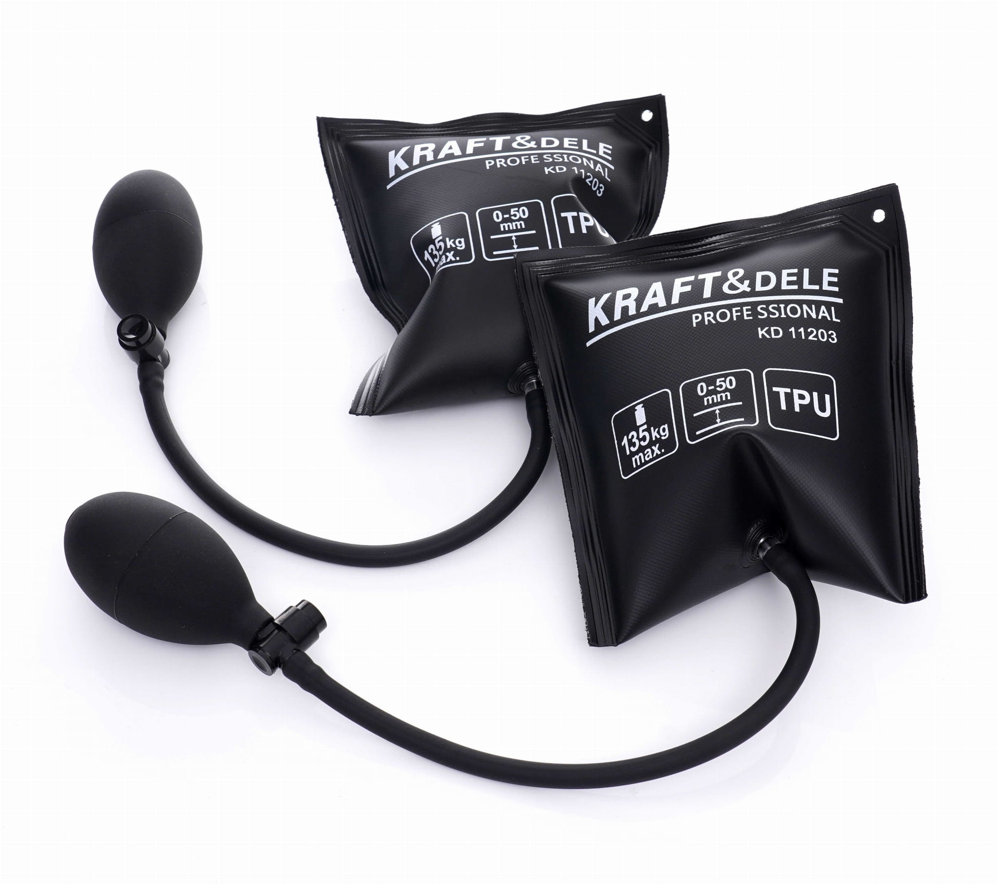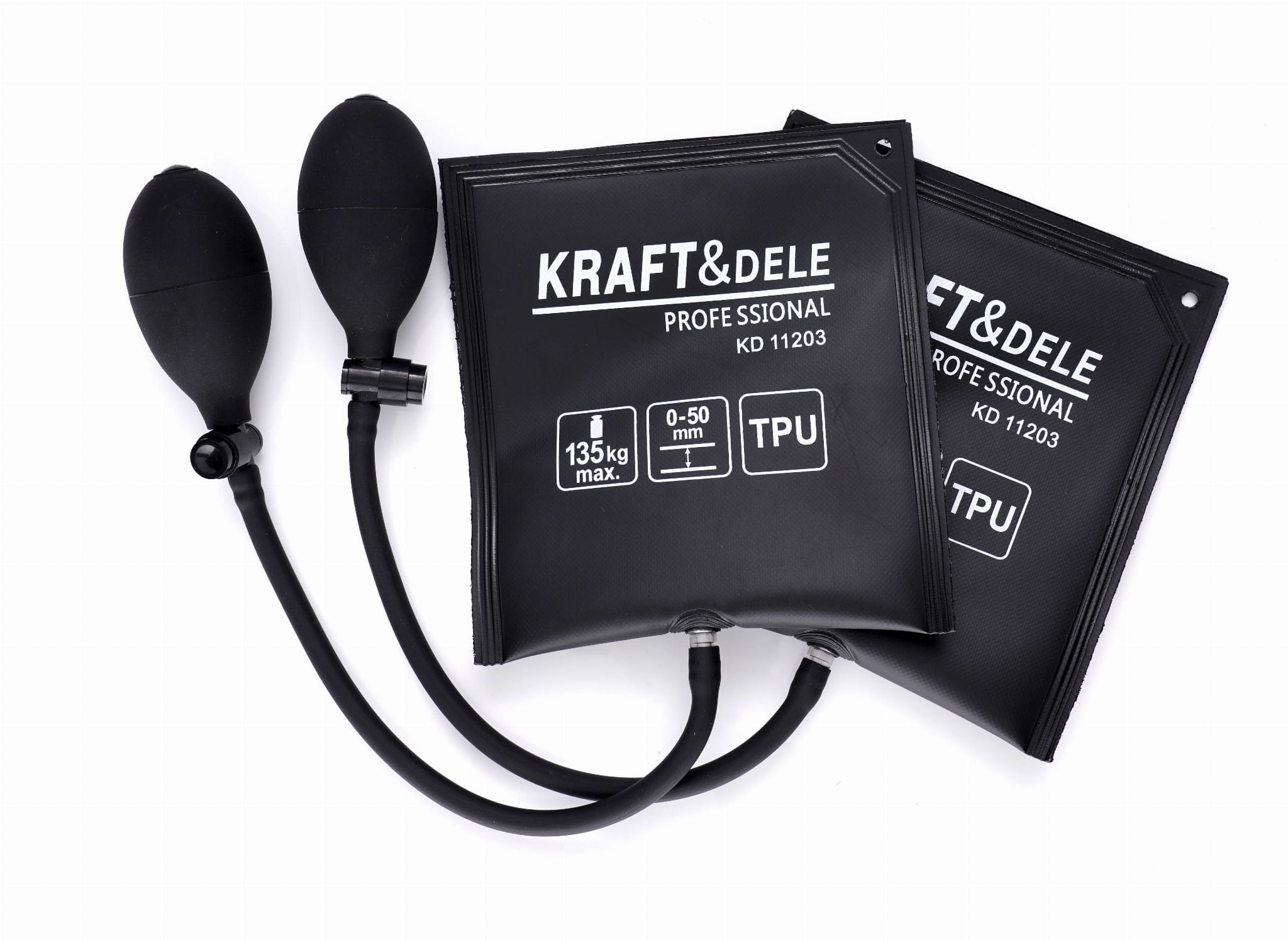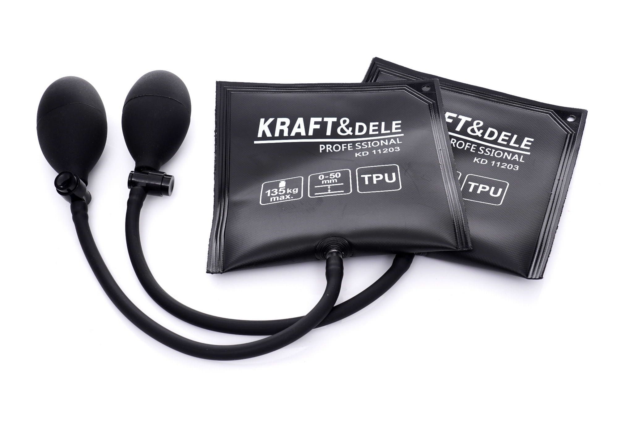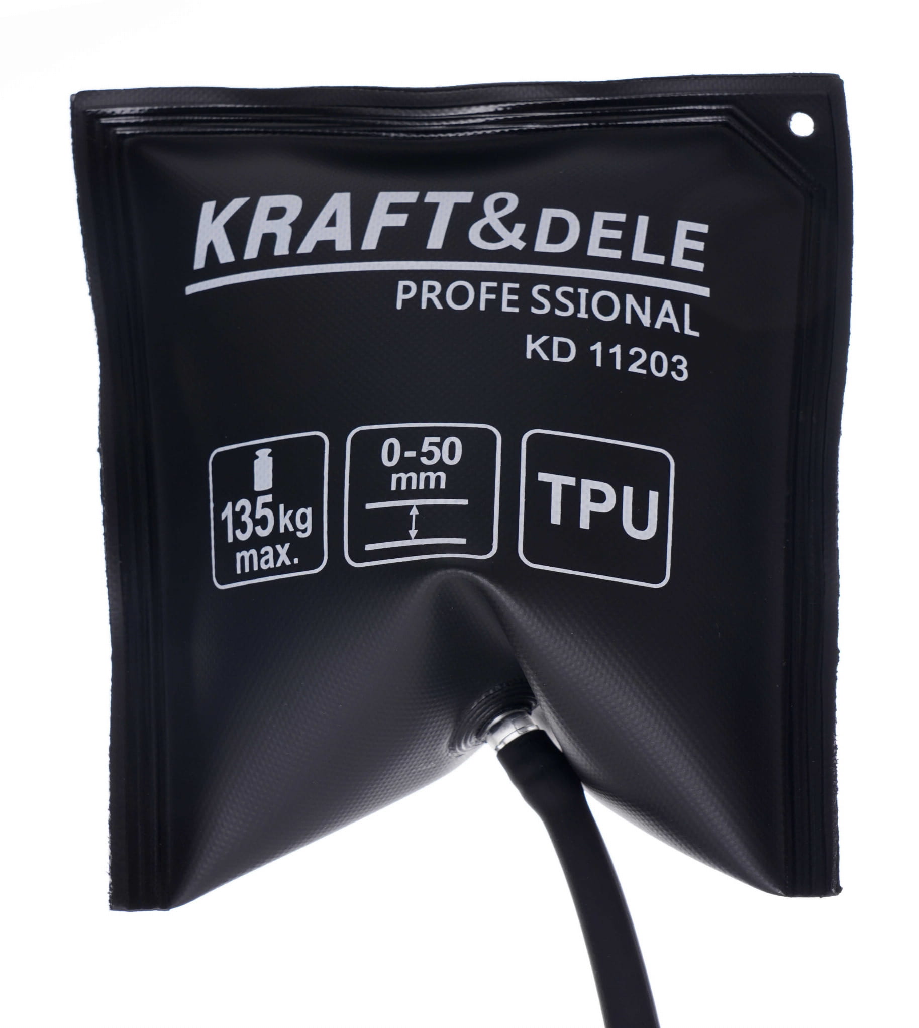 Pneumatyczna poduszka montażowa KD11203 służy do unoszenia, poziomowania i podklinowywania ciężkich przedmiotów — mebli, sprzętu AGD, okien oraz drzwi. Napełniana ręczną pompką, pozwala precyzyjnie kontrolować wysokość unoszenia bez użycia dźwigni ani podnośników mechanicznych.