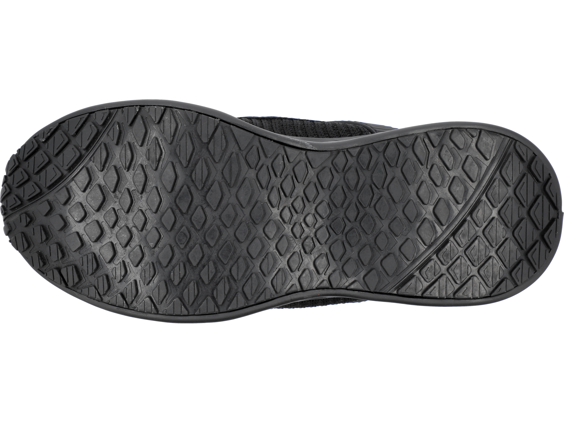 Górna warstwa ze spienionej gumy w ażurowym wzorze amortyzuje uderzenia i redukuje obciążenie stawów podczas chodzenia po twardych powierzchniach. Dolna warstwa z bieżnikiem zapewnia przyczepność na gładkich posadzkach przemysłowych i betonowych nawierzchniach.