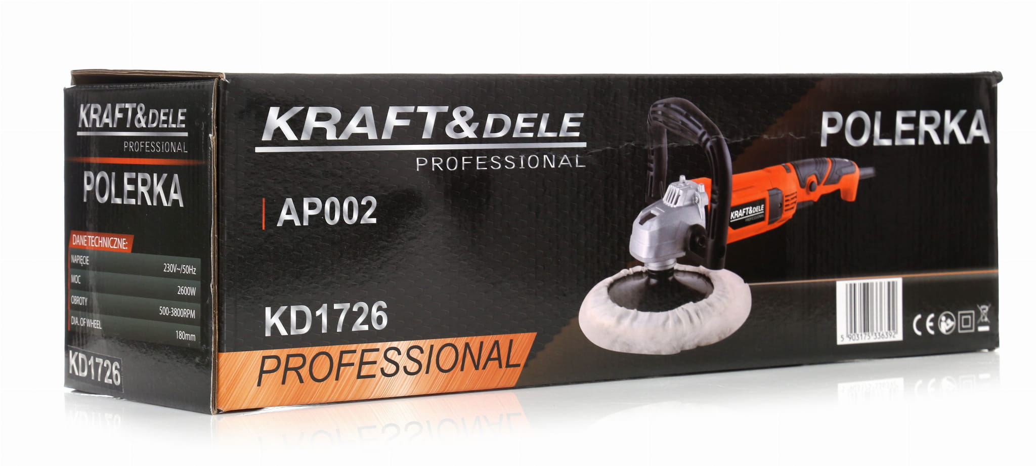 Polerka KD1726, tarcza polerska 180mm, specjalny klucz do mocowania tarczy, oryginalne opakowanie.