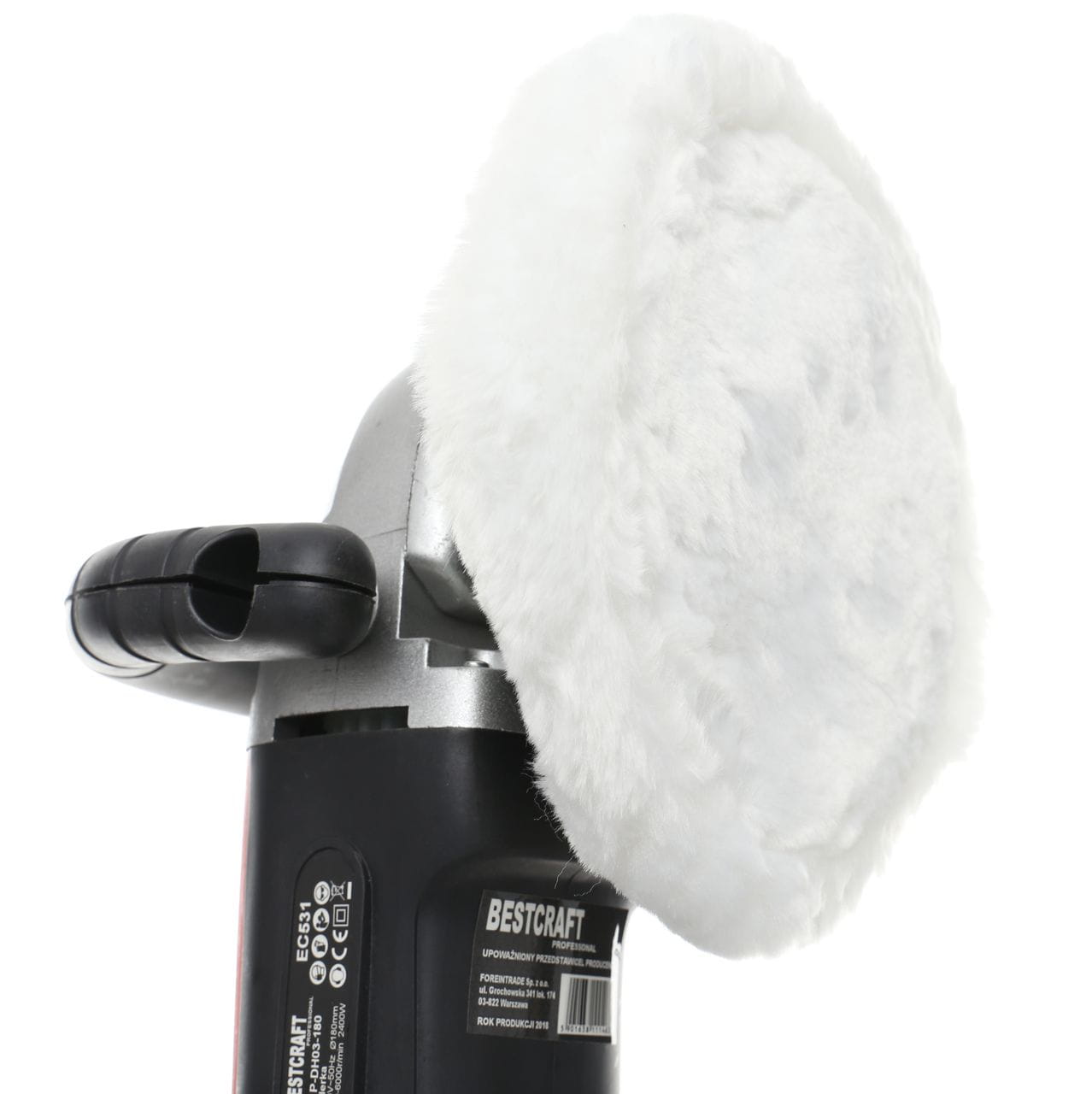 Silnik o mocy 2400 W utrzymuje stałą prędkość obrotową nawet przy zwiększonym nacisku na tarczę — istotne podczas korekty twardych lakierów, gdzie spadek obrotów pod obciążeniem pogarsza efekt polerowania.