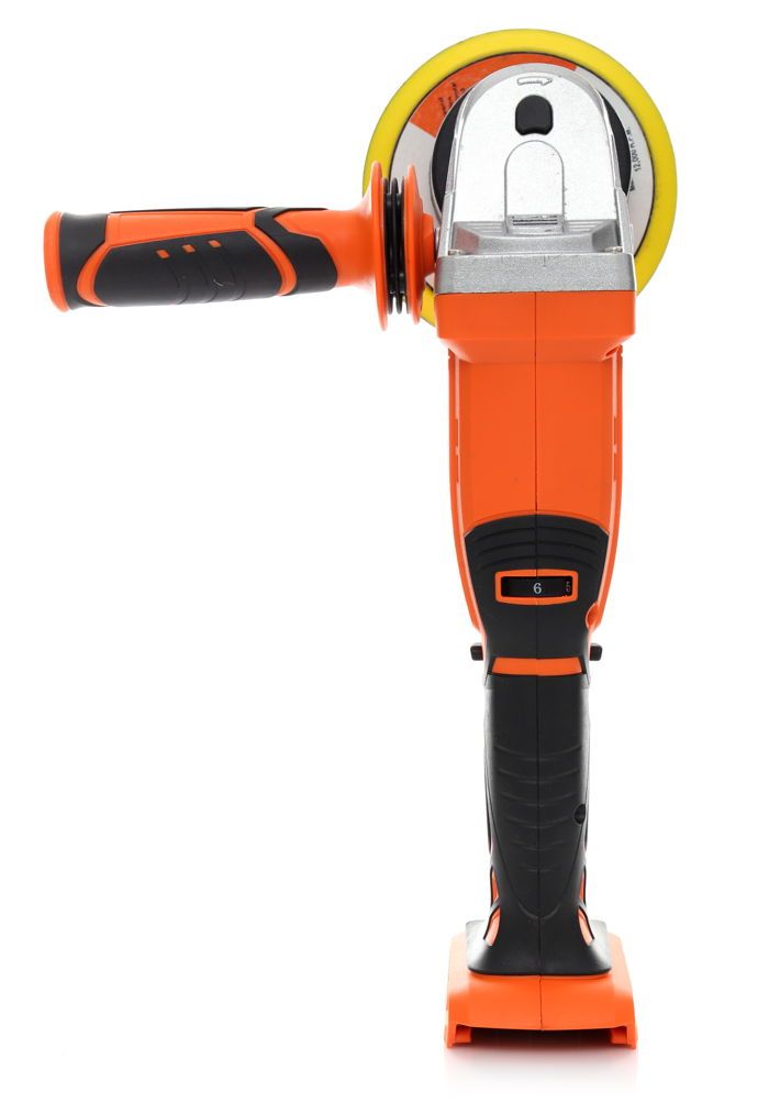 Akumulatorowa polerka kątowa z serii PROSERIES przeznaczona do szlifowania, obróbki zgrubnej i polerowania metali, kamienia oraz ceramiki. Zasilanie 18V Li-Ion zapewnia mobilność pracy bez konieczności dostępu do sieci elektrycznej, a regulacja prędkości obrotowej pozwala dopasować parametry pracy do rodzaju obrabianego materiału i zastosowanej tarczy.