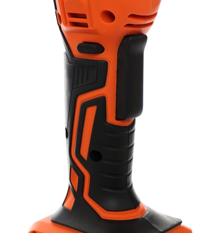 Główna rękojeść pokryta jest materiałem antypoślizgowym, który zapewnia stabilny chwyt nawet przy pracy w rękawicach lub w warunkach wilgotnych. Dodatkowy uchwyt boczny z funkcją antywibracyjną poprawia kontrolę nad urządzeniem podczas dłuższej pracy i zmniejsza zmęczenie rąk.