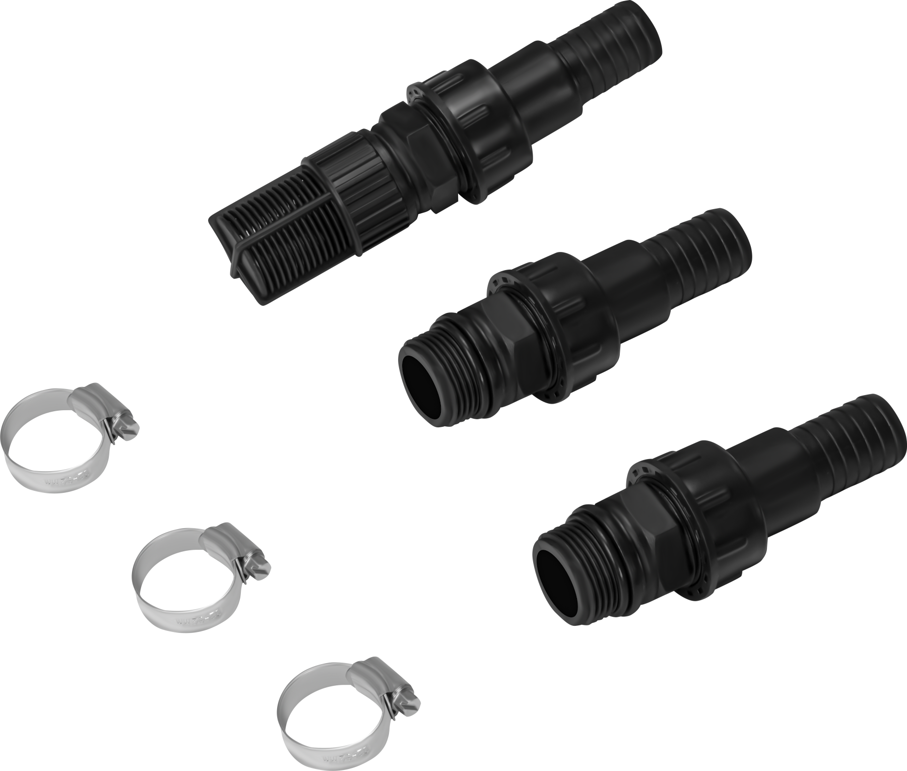 Standardowy gwint calowy zapewnia kompatybilność z powszechnie dostępnymi wężami ogrodowymi, złączkami i rozgałęźnikami. W zestawie znajdują się króćce do węży oraz metalowe opaski zaciskowe, co pozwala na podłączenie bez dodatkowych zakupów.