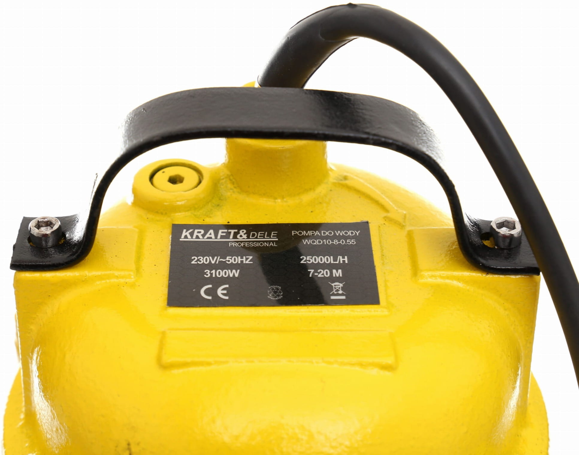 Wydajność 25 000 l/h (ok. 417 l/min) jest parametrem maksymalnym, osiąganym przy minimalnym oporze hydraulicznym. W praktyce rzeczywista wydajność zależy od wysokości tłoczenia (im większa wysokość, tym niższy przepływ) oraz długości i średnicy węża odprowadzającego. Do podłączenia wymagany jest wąż lub rura o wewnętrznej średnicy 2" lub adapter redukcyjny. Pompa zasilana jest ze standardowego gniazda 230 V, jednak przy mocy 3100 W należy upewnić się, że instalacja elektryczna posiada odpowiednie zabezpieczenia — zalecany bezpiecznik to co najmniej 16 A.