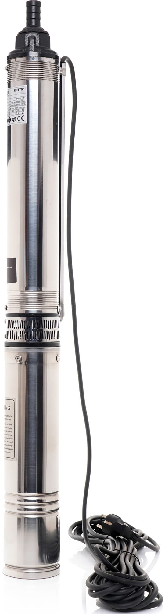 KD1704 to pompa głębinowa śrubowa przeznaczona do pompowania czystej wody ze studni wierconych o średnicy minimalnej 4" (100 mm). Pracuje na zasadzie tłoczenia wody, a nie jej zasysania, co przekłada się na niższe zużycie energii i możliwość pracy na głębokościach do 65 m. Urządzenie współpracuje z systemami hydroforowymi oraz instalacjami nawadniającymi.