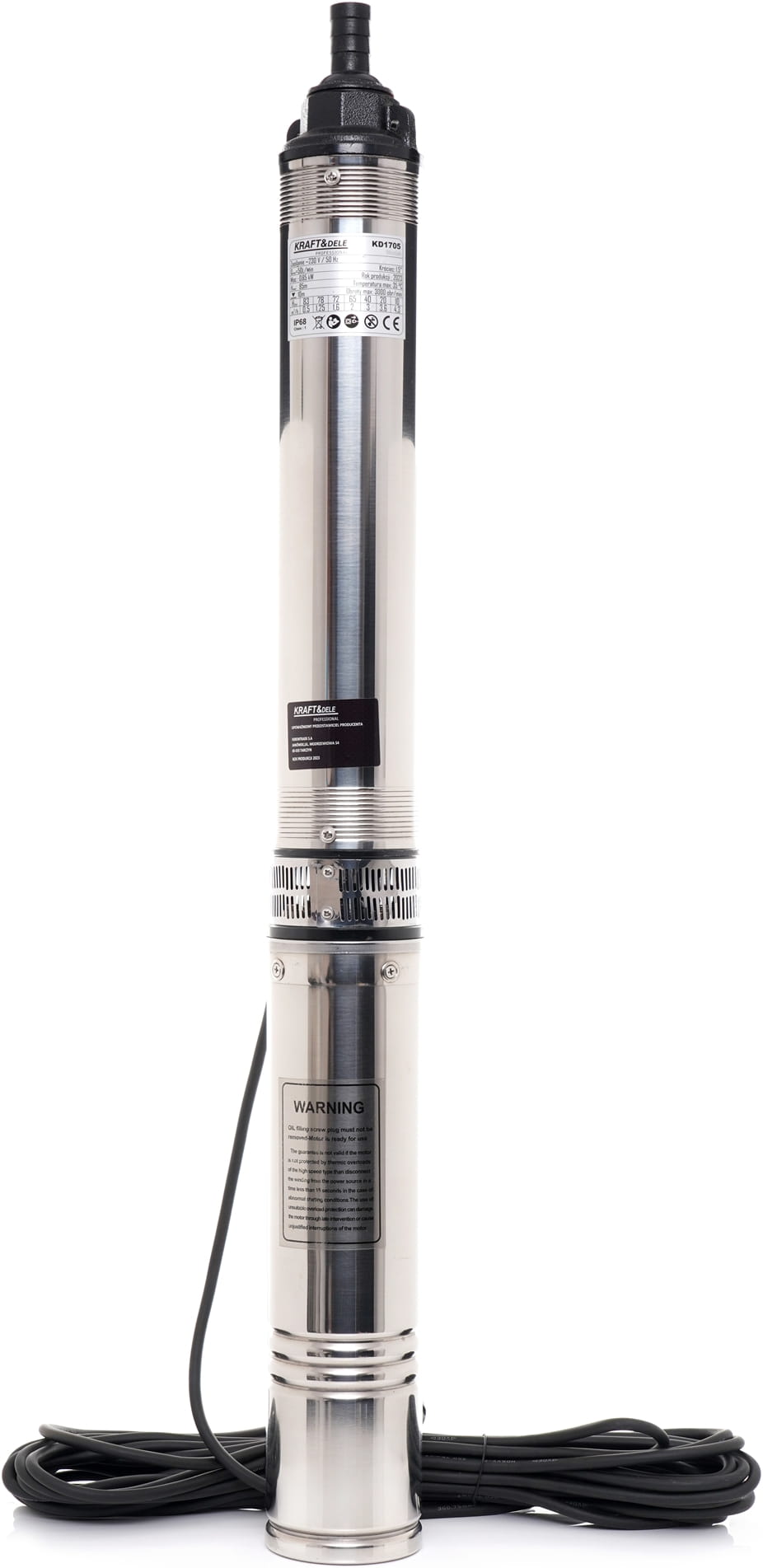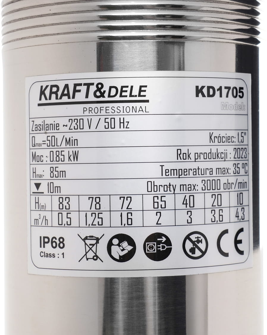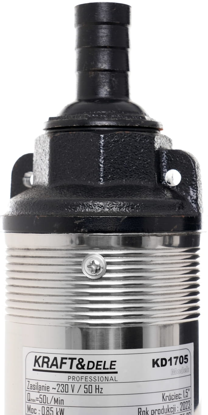 KD1705 to pompa głębinowa śrubowa o średnicy 4" (100 mm), przeznaczona do czerpania czystej wody ze studni wierconych oraz współpracy z systemami hydroforowymi i instalacjami nawadniającymi. Zasada działania oparta na tłoczeniu (zamiast ssania) pozwala efektywnie podnosić wodę z głębokości do 85 metrów przy wydajności do 50 litrów na minutę.