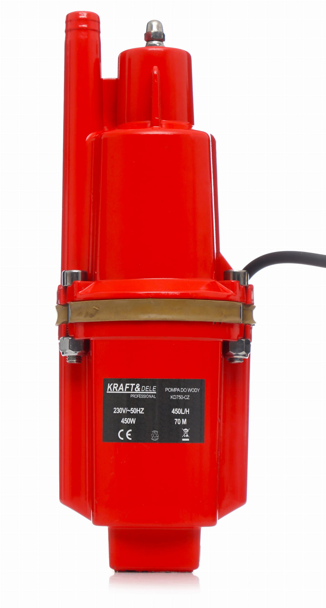 KD750-CZ to elektryczna pompa membranowa typu zanurzeniowego (nurek), przeznaczona do tłoczenia wody ze studni, zbiorników oraz innych źródeł. Konstrukcja górnossąca umożliwia opuszczenie urządzenia bezpośrednio do wody, skąd pompuje ją na wysokość do 8 metrów przy wydajności 450 litrów na godzinę.