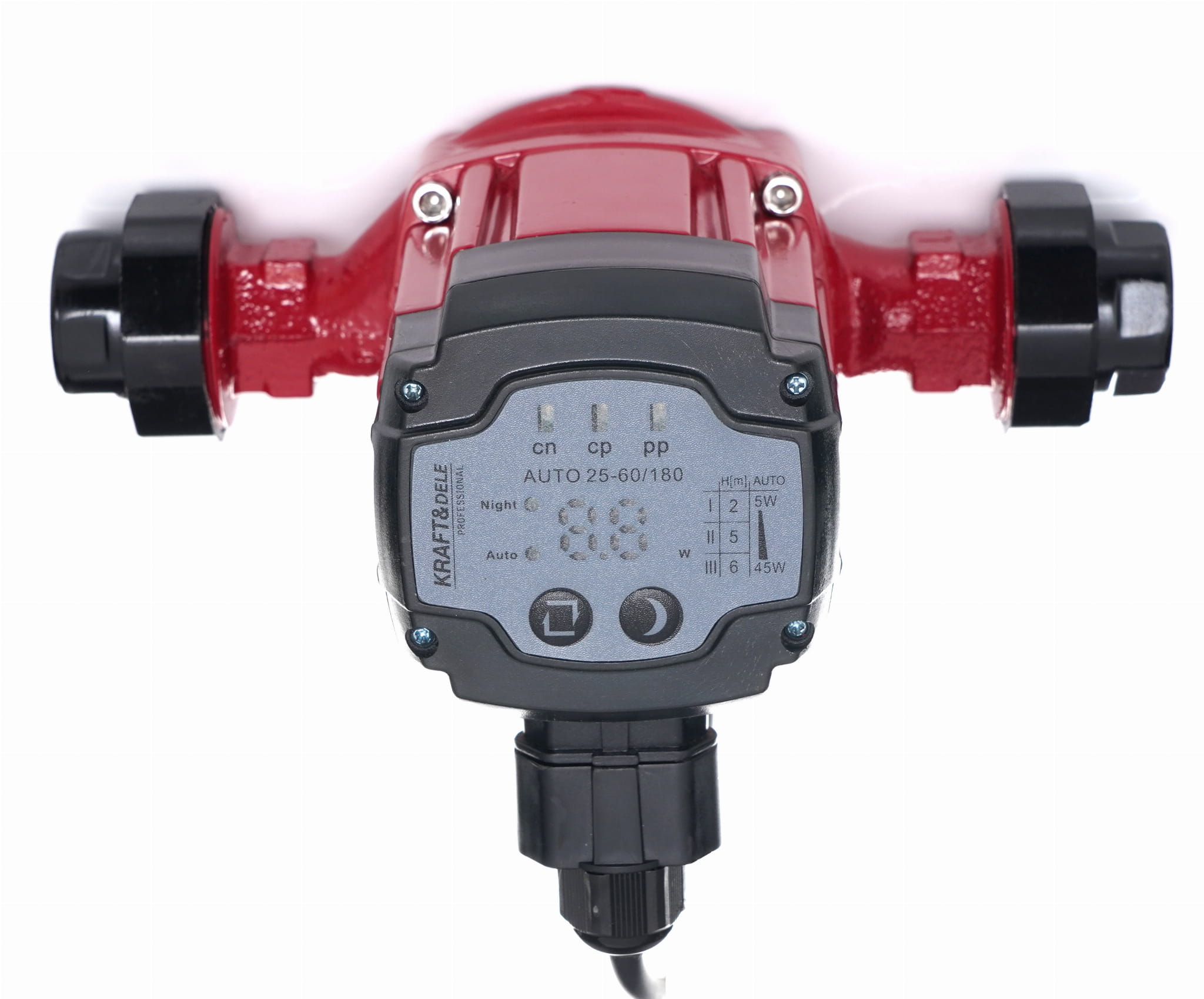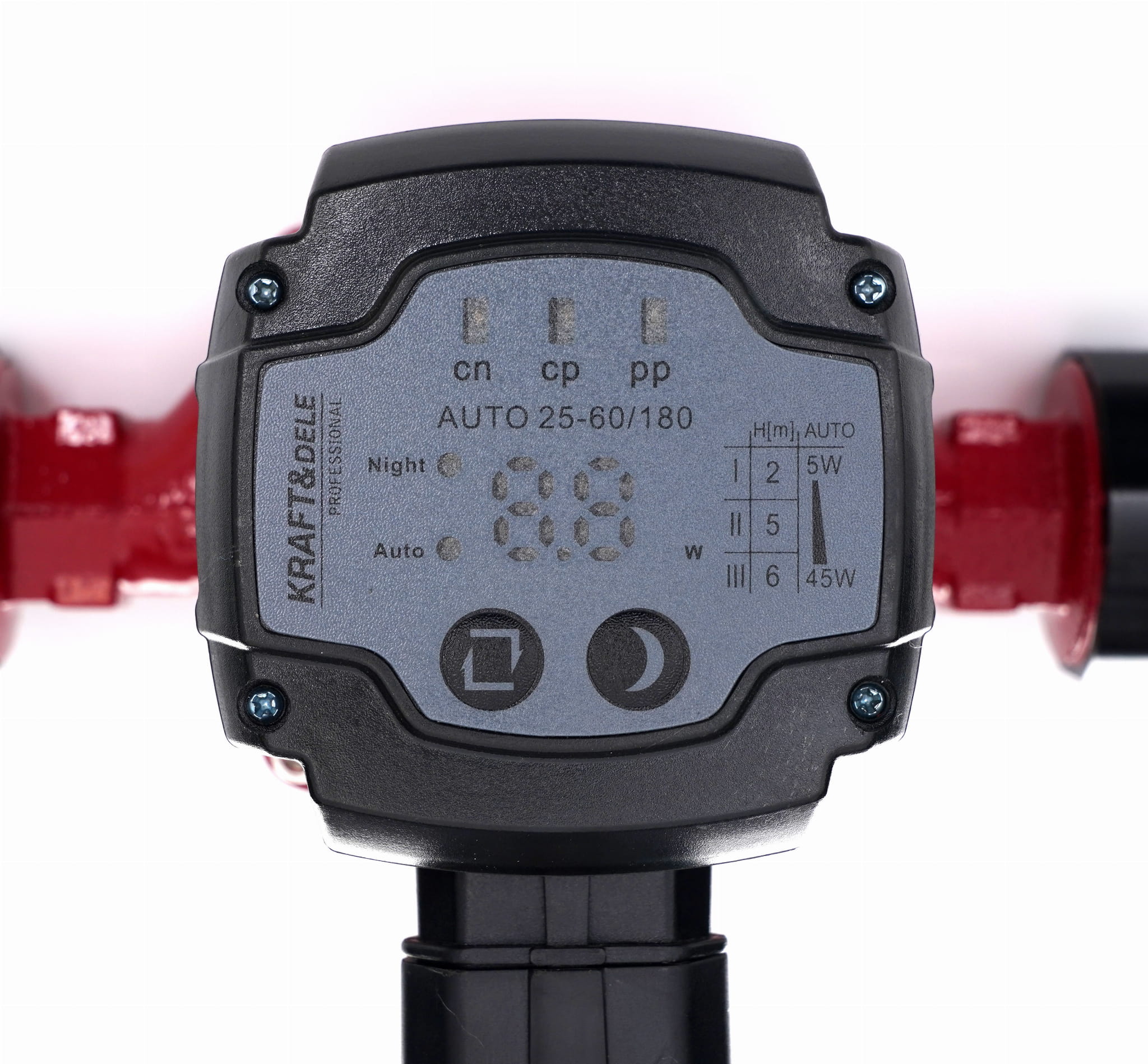Pompa oferuje tryb automatyczny, stałego ciśnienia, proporcjonalnego ciśnienia, nocny oraz trzy ręczne prędkości. Dzięki temu można ją dopasować zarówno do instalacji grzejnikowych (tryb proporcjonalnego ciśnienia), jak i podłogowych (tryb stałego ciśnienia), gdzie wymagana jest stabilna praca przy zmiennym obciążeniu hydraulicznym.