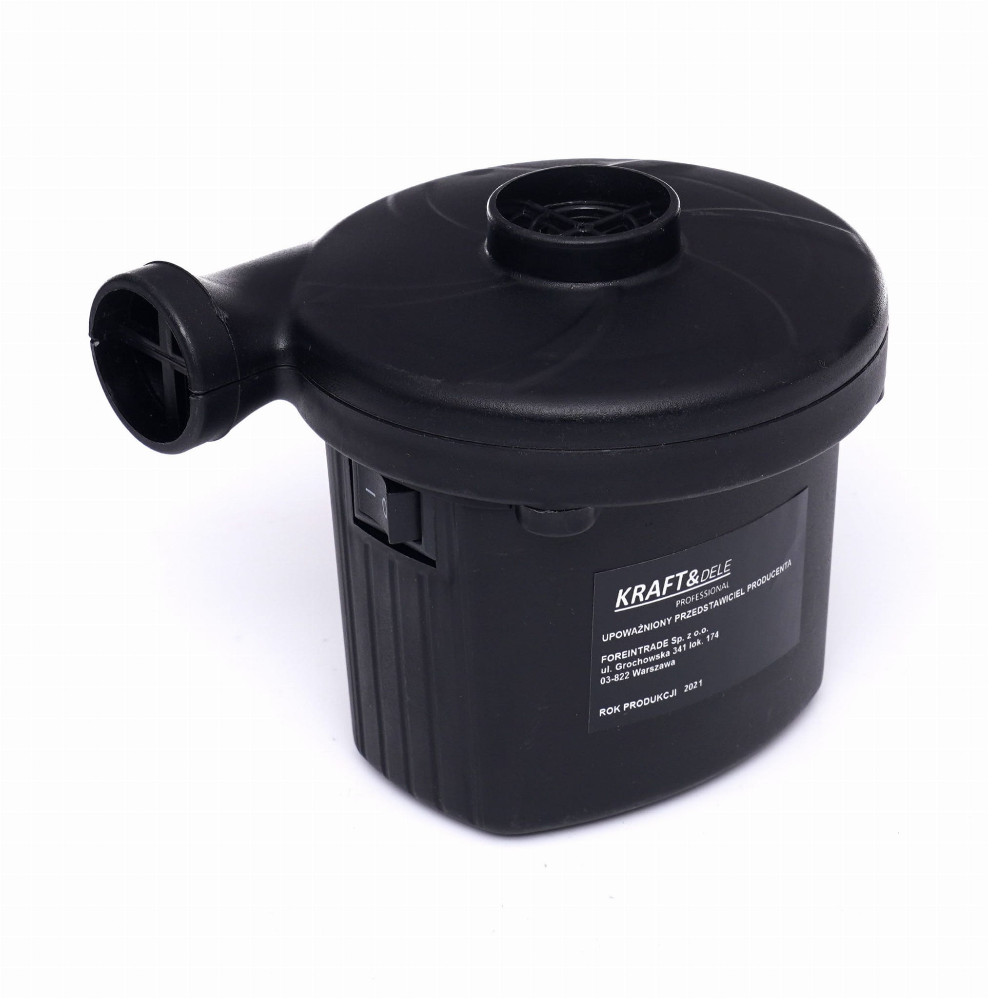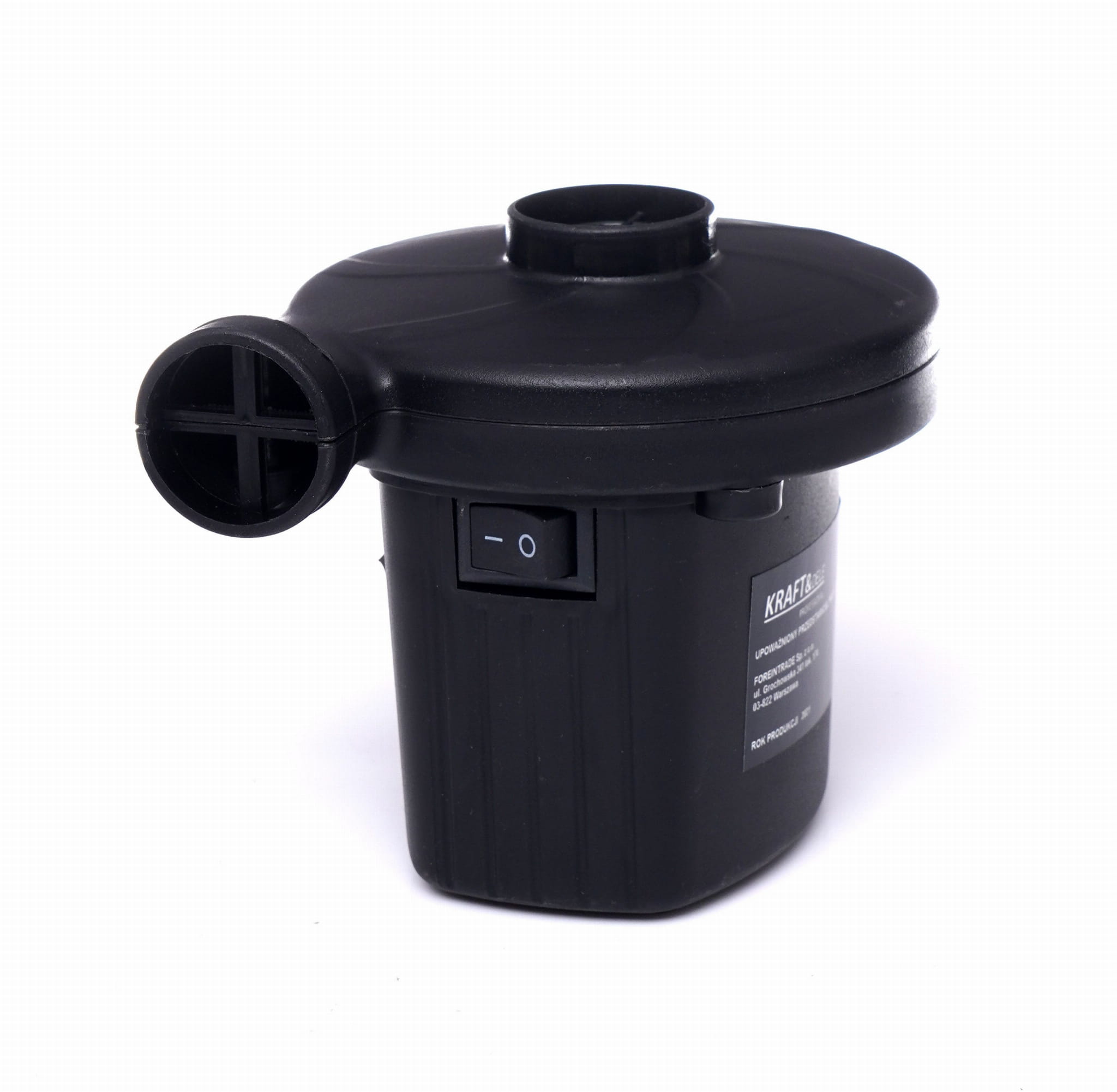 Elektryczna pompka sieciowa przeznaczona do nadmuchiwania artykułów dmuchanych w gospodarstwie domowym i ogrodzie. Urządzenie współpracuje z popularnymi zaworami dzięki zestawowi trzech wymiennych dysz o różnych średnicach.