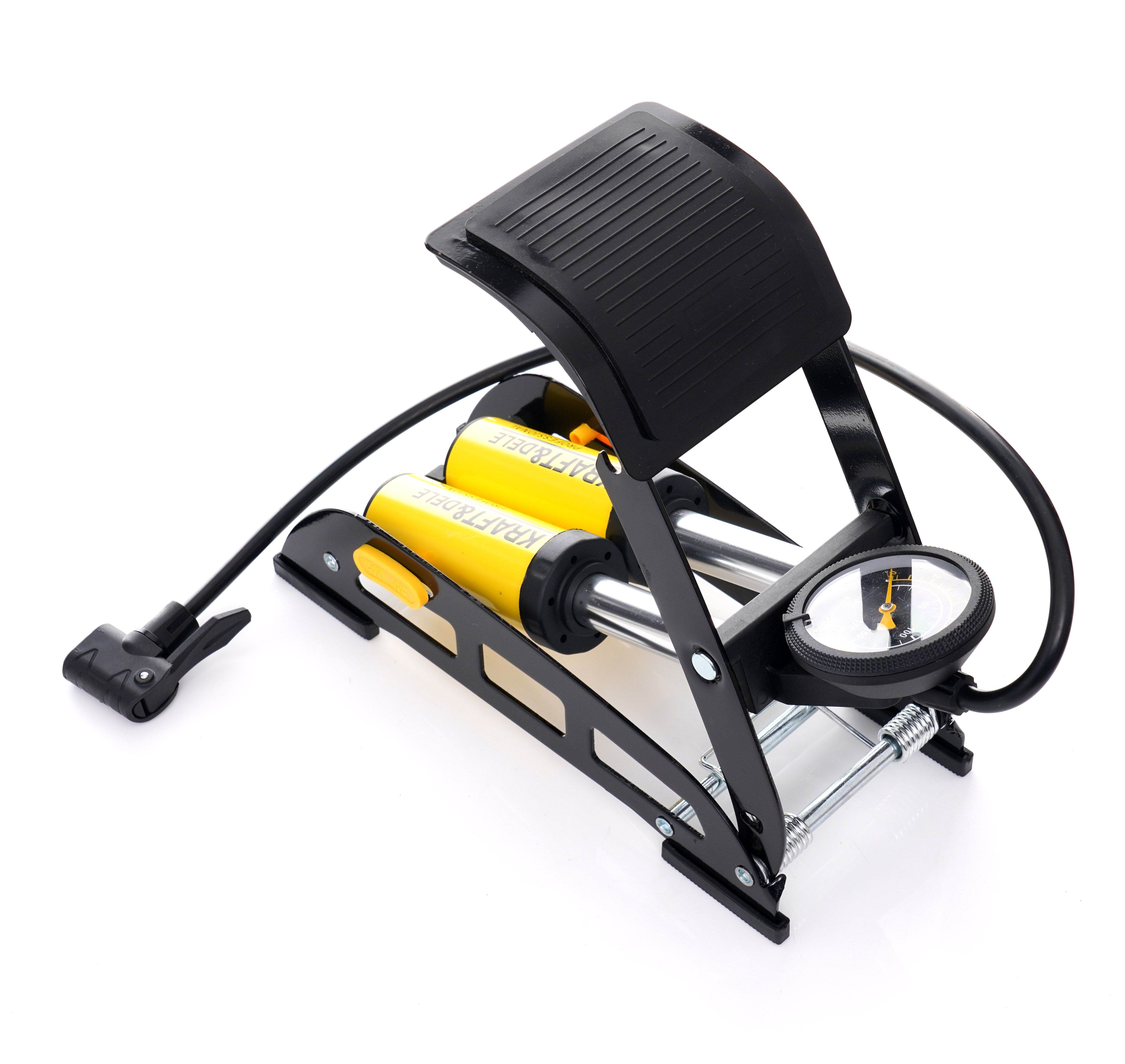 POMPKA NOŻNA Z MANOMETREM KD11824 / KD11824 / KRAFT&DELE to solidna pompka nożna z manometrem do szybkiego pompowania i dopompowywania kół w rowerze. Jeśli zależy Ci na sprawnym działaniu, stabilnym pedale i kontroli ciśnienia, model KD11824 będzie rozsądnym wyborem do codziennego użytku.