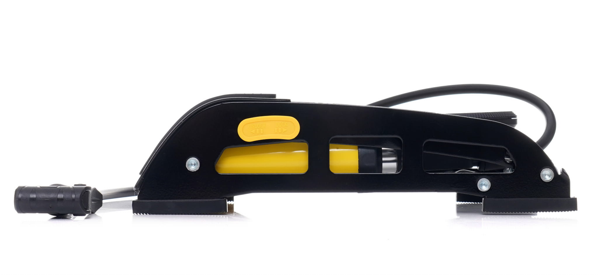 Mata gumowa na powierzchni pedału zapobiega ześlizgnięciu się stopy podczas pompowania. Ma to znaczenie szczególnie przy większym wysiłku, gdy nacisk na pedał jest silniejszy i ryzyko poślizgu wzrasta.