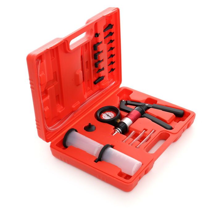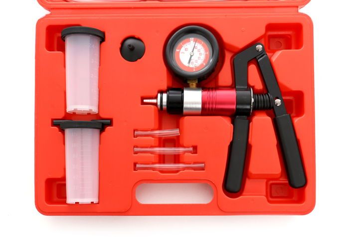 W skład zestawu wchodzą wąż winylowy w różnych przekrojach, adaptery, podstawki, osłony oraz przyssawka. Dzięki temu możliwe jest podłączenie pompki do różnych typów zaworów, złączek i elementów układów próżniowych spotykanych w różnych modelach pojazdów.