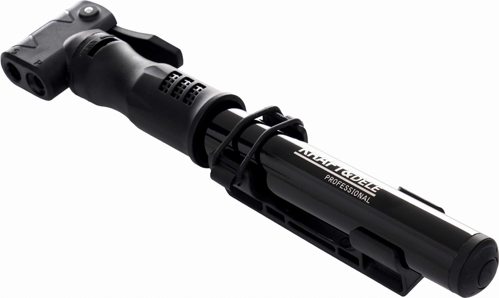 Ręczna pompka rowerowa w formacie mini, przeznaczona do szybkiego napompowania lub dopompowania opon w terenie. Obsługuje oba popularne typy wentyli bez potrzeby stosowania adapterów. W zestawie znajduje się uchwyt mocujący do ramy roweru.