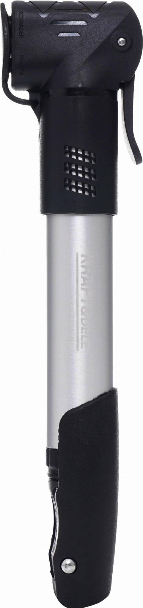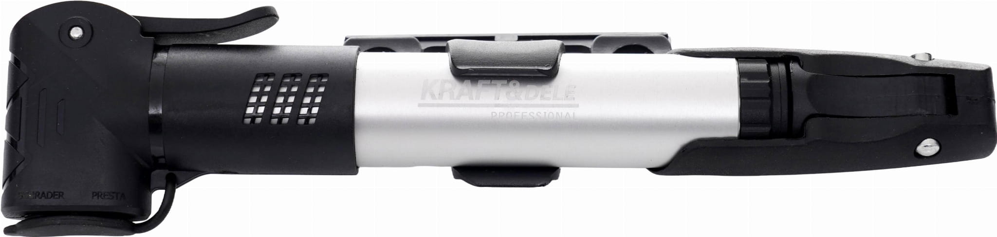 Ręczna pompka rowerowa w kompaktowej formie, przeznaczona do napompowania i dopompowania kół rowerowych w warunkach trasowych. Podwójna ruchoma głowica obsługuje trzy najpopularniejsze typy wentyli bez potrzeby stosowania adapterów, a dołączony uchwyt umożliwia trwałe mocowanie do ramy roweru.
