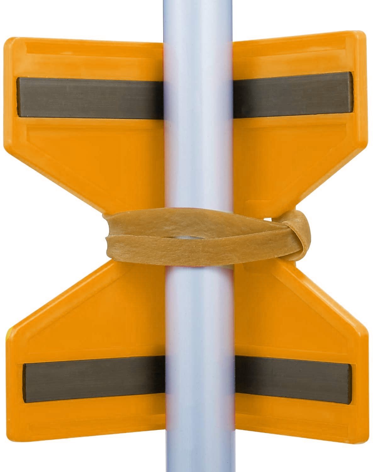 Wbudowane magnesy umożliwiają przyklejenie poziomicy do metalowych powierzchni — stalowych słupków, rur czy profili. Narzędzie pozostaje stabilnie zamocowane bez przytrzymywania, co pozwala swobodnie ustawiać element obiema rękami.