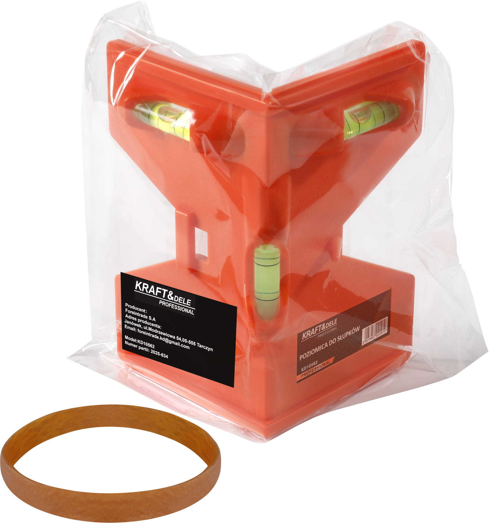 | Zawartość zestawu | Poziomica KD10562, gumka mocująca, opakowanie |