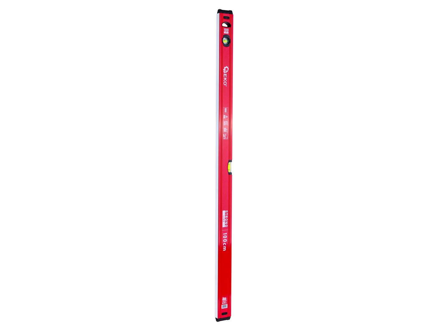 Poziomnica z profilu aluminiowego o długości 1000 mm przeznaczona do prac budowlanych i wykończeniowych wymagających precyzyjnego wyznaczania poziomów i pionów na szerokich płaszczyznach. Jednokomorowy profil z przetłoczeniami, magnes na całej długości oraz wzmocnione libelle odporne na uszkodzenia mechaniczne i promieniowanie UV.