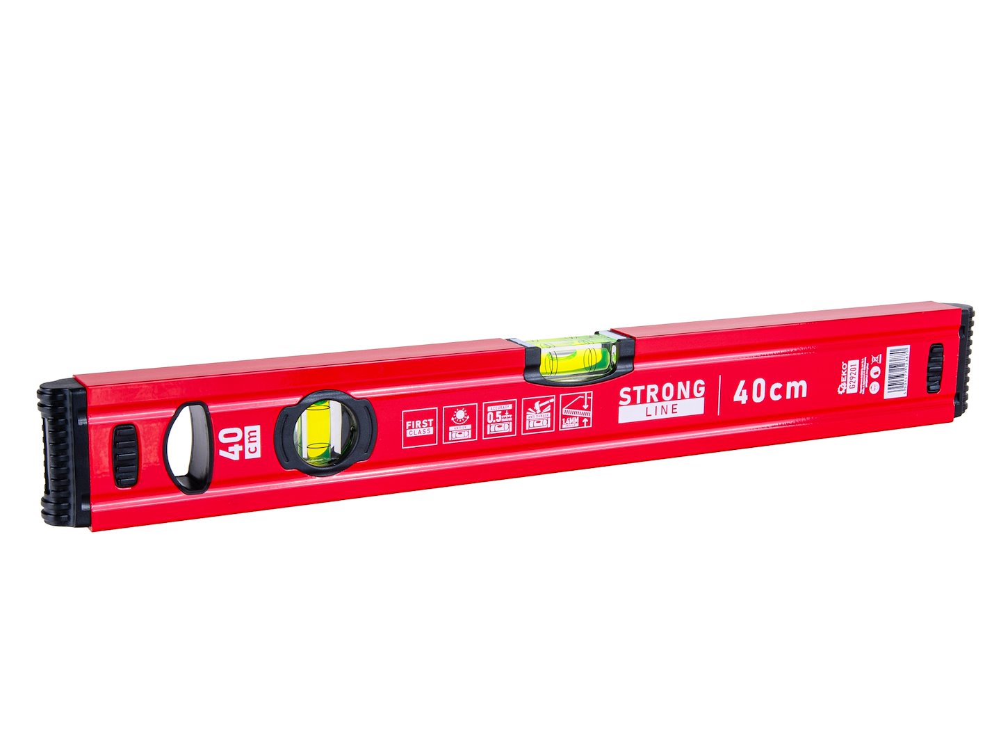 Poziomnica aluminiowa serii Strong Line to narzędzie pomiarowe przeznaczone do wyznaczania poziomów i pionów na budowach, przy montażu zabudów GK oraz pracach wykończeniowych. Jednokomorowy profil ze stopu aluminium o grubości 1,4 mm, wbudowany magnes na całej długości oraz wzmocnione libelle anti-damage tworzą konstrukcję przystosowaną do intensywnej pracy w terenie.