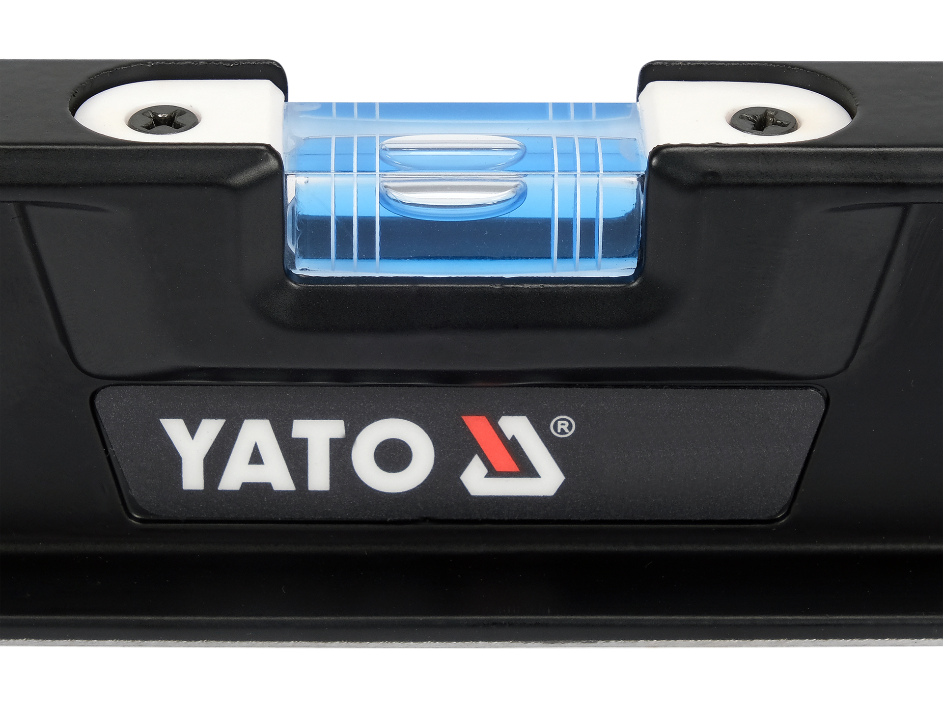 YATO YT-30311 wyróżnia się wysoką odpornością na wstrząsy dzięki aluminiowemu profilowi i elastycznym odbojnikom. Dwa uchwyty ułatwiają manipulację, a możliwość pobijania młotkiem czyni ją niezwykle praktyczną. Trzy libelle (pion, poziom, 45 stopni) zapewniają wszechstronne zastosowanie, a dokładność 0.5 mm/m gwarantuje precyzyjne pomiary. Dodatkowym atutem są 5 silnych magnesów we frezowanej podstawie, które znacznie ułatwiają pracę na metalowych powierzchniach. Powierzchnia poziomnicy jest malowana proszkowo, co zapewnia trwałość i odporność na korozję.