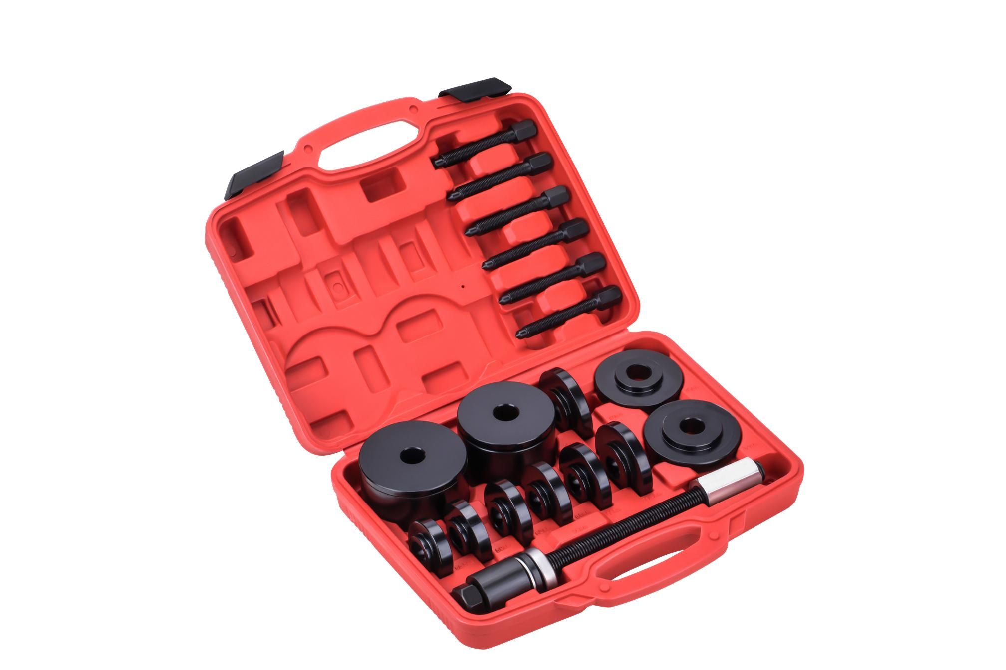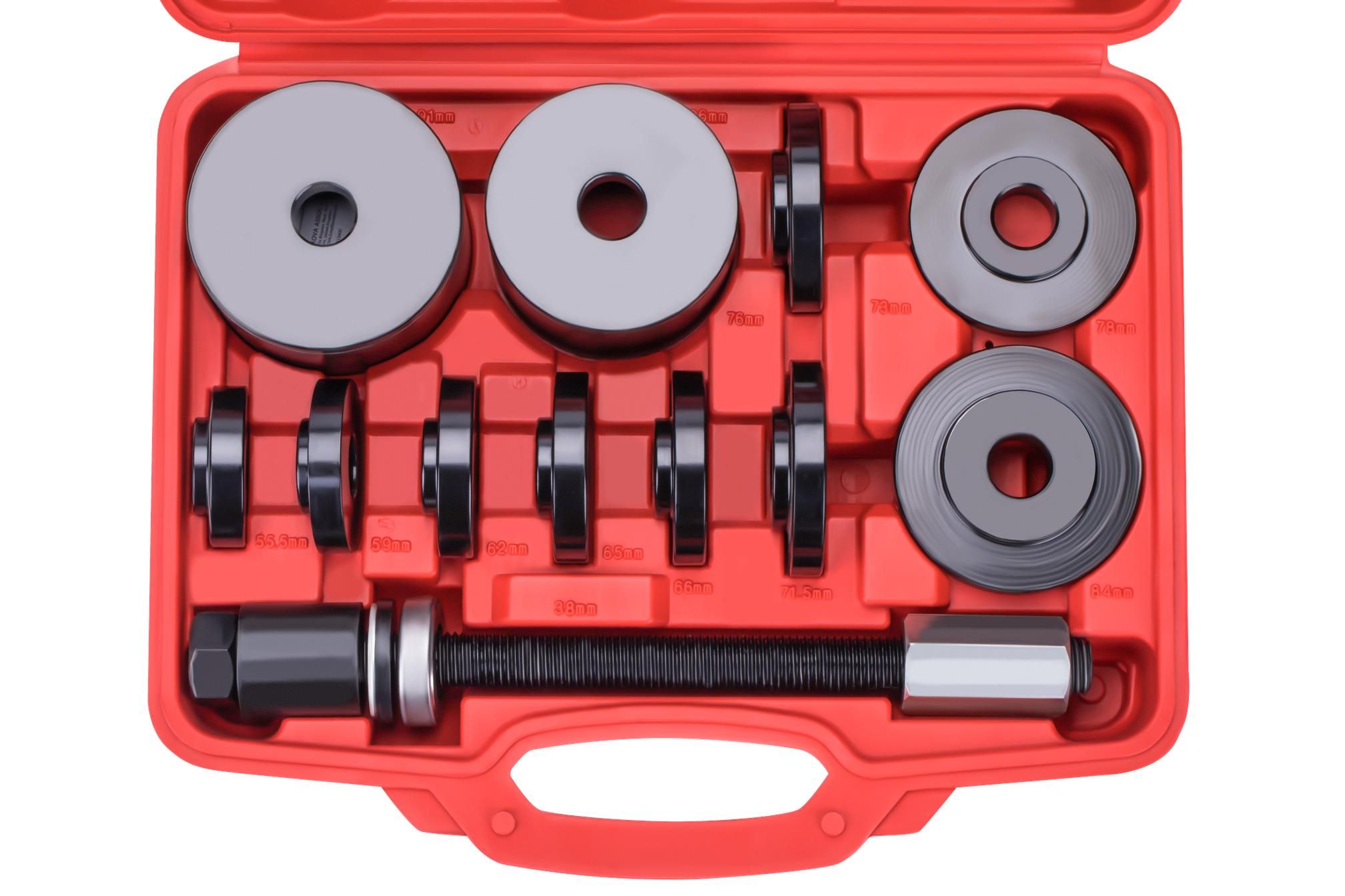 Zestaw KD12517 to prasa adaptery i ściągacz śrubowy do montażu oraz demontażu przedniej piasty, łożysk i tulei bez konieczności pobijania. Sprawdza się w serwisie i garażu, gdy liczy się szybka praca oraz kontrola nad naciskiem, bez naruszania konstrukcji demontowanych elementów.