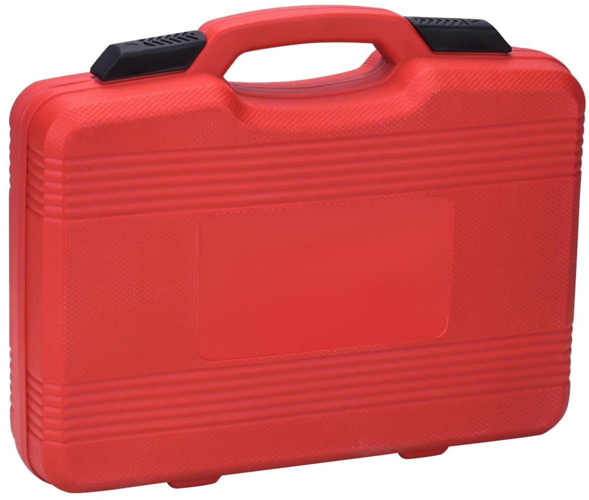 Wszystkie elementy zestawu mają przypisane miejsca w formowanym wkładzie walizki. Ułatwia to kontrolę kompletności zestawu po każdym użyciu oraz transport między stanowiskami pracy.
