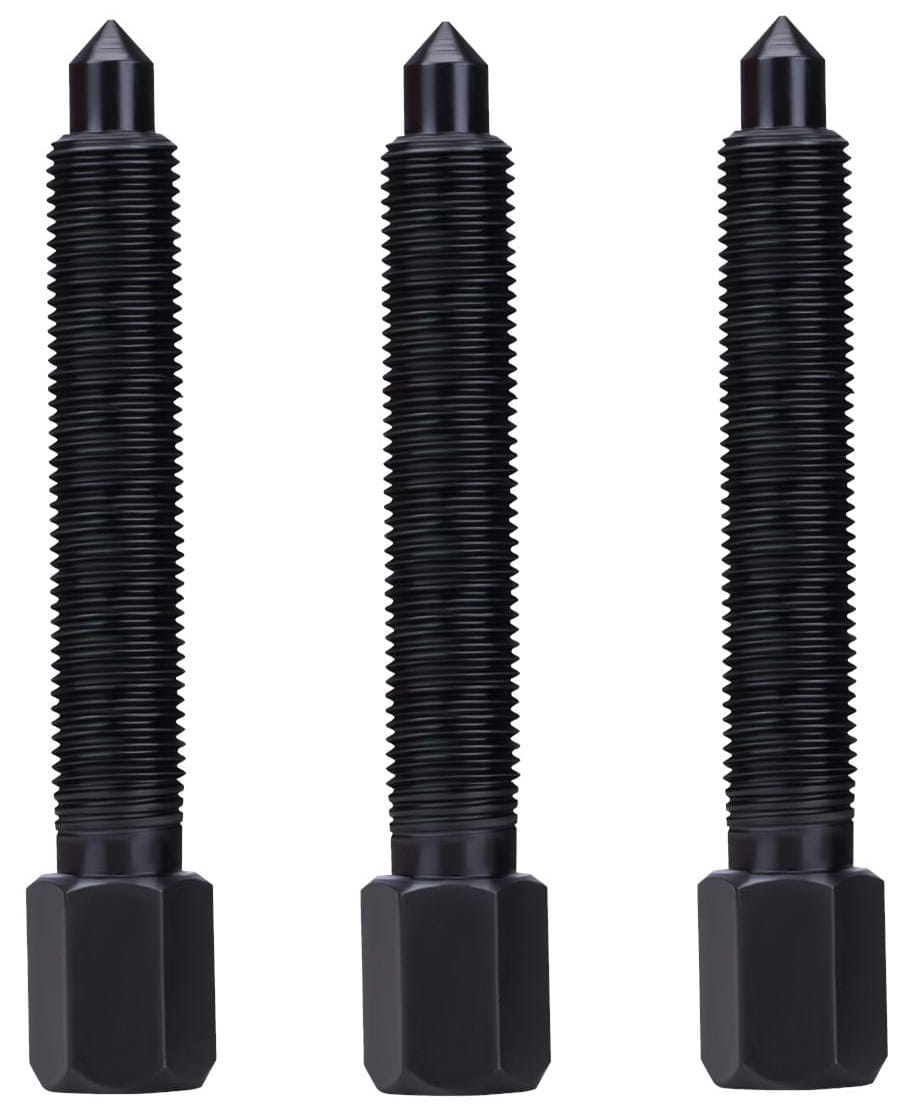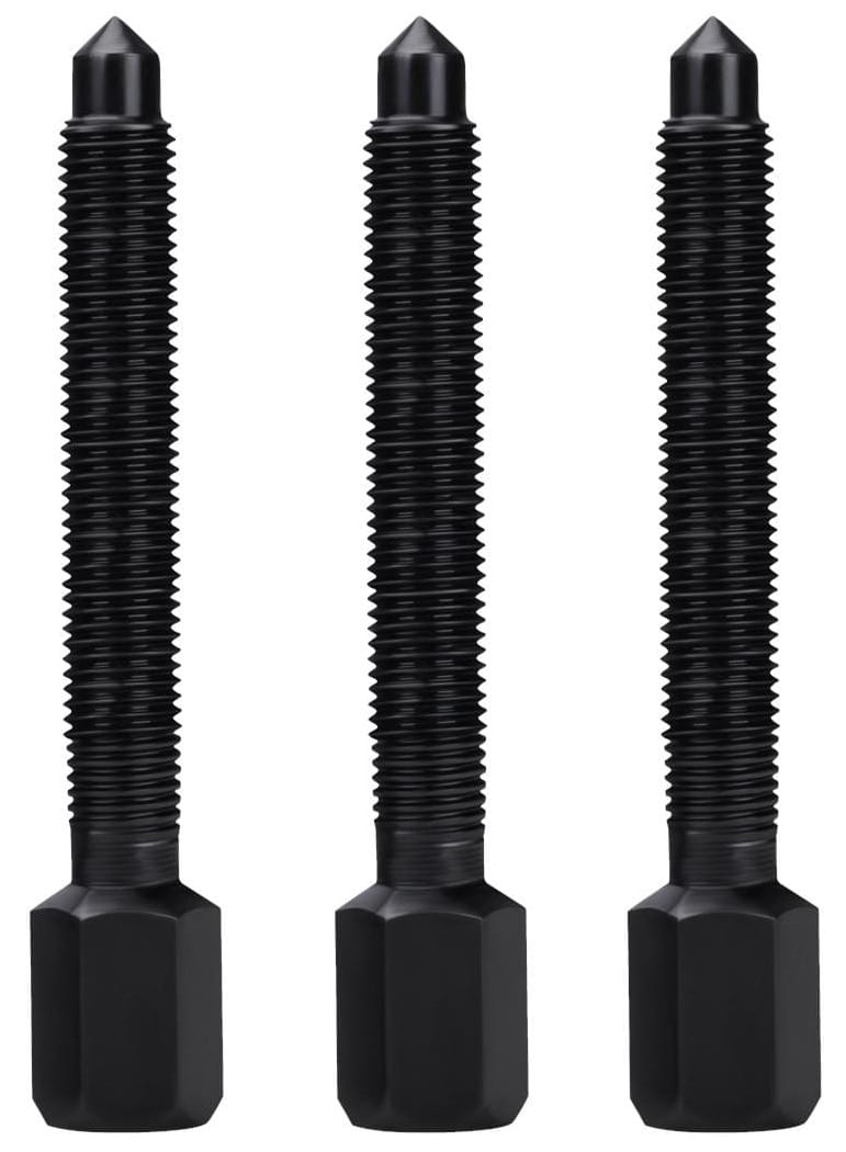 Przed doborem dysku lub tulei należy zmierzyć średnicę zewnętrzną łożyska (lub gniazda w piaście) suwmiarką. Wybrany adapter powinien opierać się na pierścieniu zewnętrznym łożyska podczas wyciągania lub na pierścieniu wewnętrznym podczas wciskania — nigdy jednocześnie na obu pierścieniach, aby nie przenosić obciążenia przez elementy toczne. Śruba napędowa o długości gwintu 270 mm umożliwia pracę z głęboko osadzonymi łożyskami bez konieczności stosowania przedłużeń.