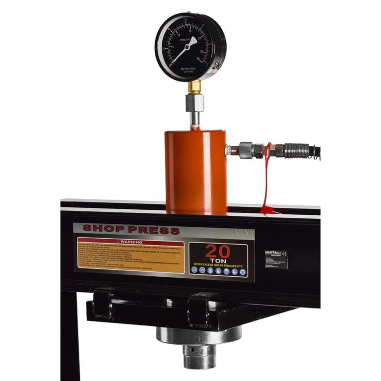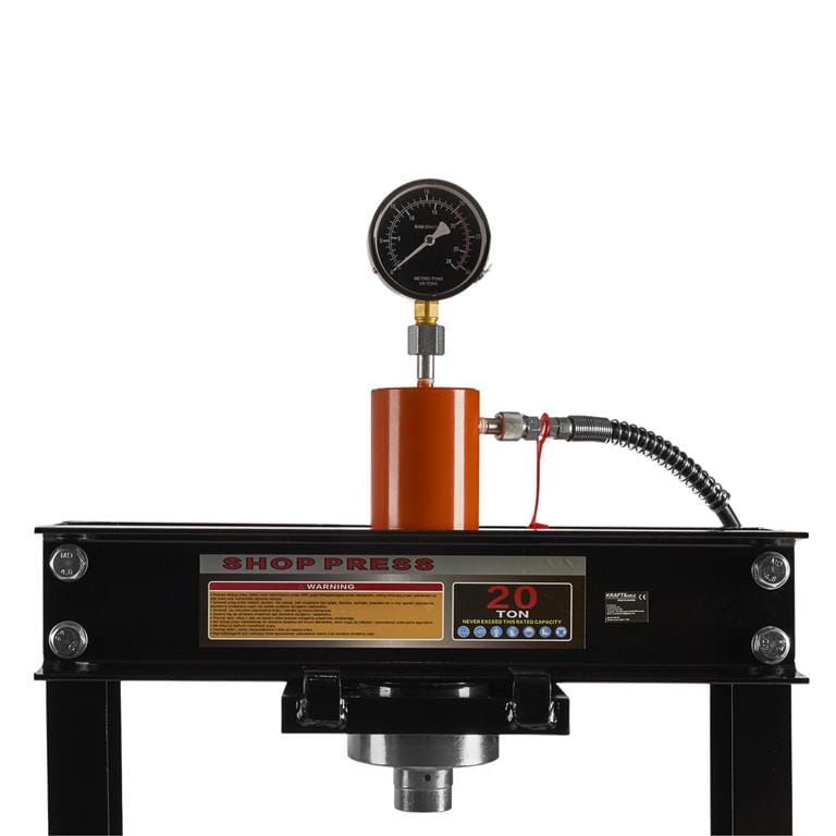 Prasa hydrauliczna KD318 to warsztatowe urządzenie ramowe przeznaczone do wciskania, wyciskania i prostowania elementów metalowych. Stalowa konstrukcja ramowa przenosi siłę nacisku do 20 ton, generowaną ręcznie za pomocą dźwigni pompującej siłownik hydrauliczny.