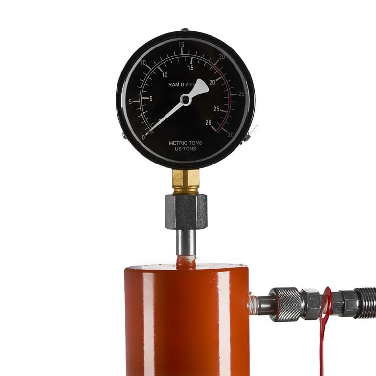 Przy regularnym użytkowaniu należy co kilka miesięcy sprawdzać szczelność siłownika i stan uszczelnień tłoczyska. Spadek siły nacisku lub powolne cofanie tłoka przy zamkniętym zaworze mogą wskazywać na nieszczelność wewnętrzną lub niski poziom oleju. Do uzupełniania stosować olej hydrauliczny zgodny z zaleceniami producenta.