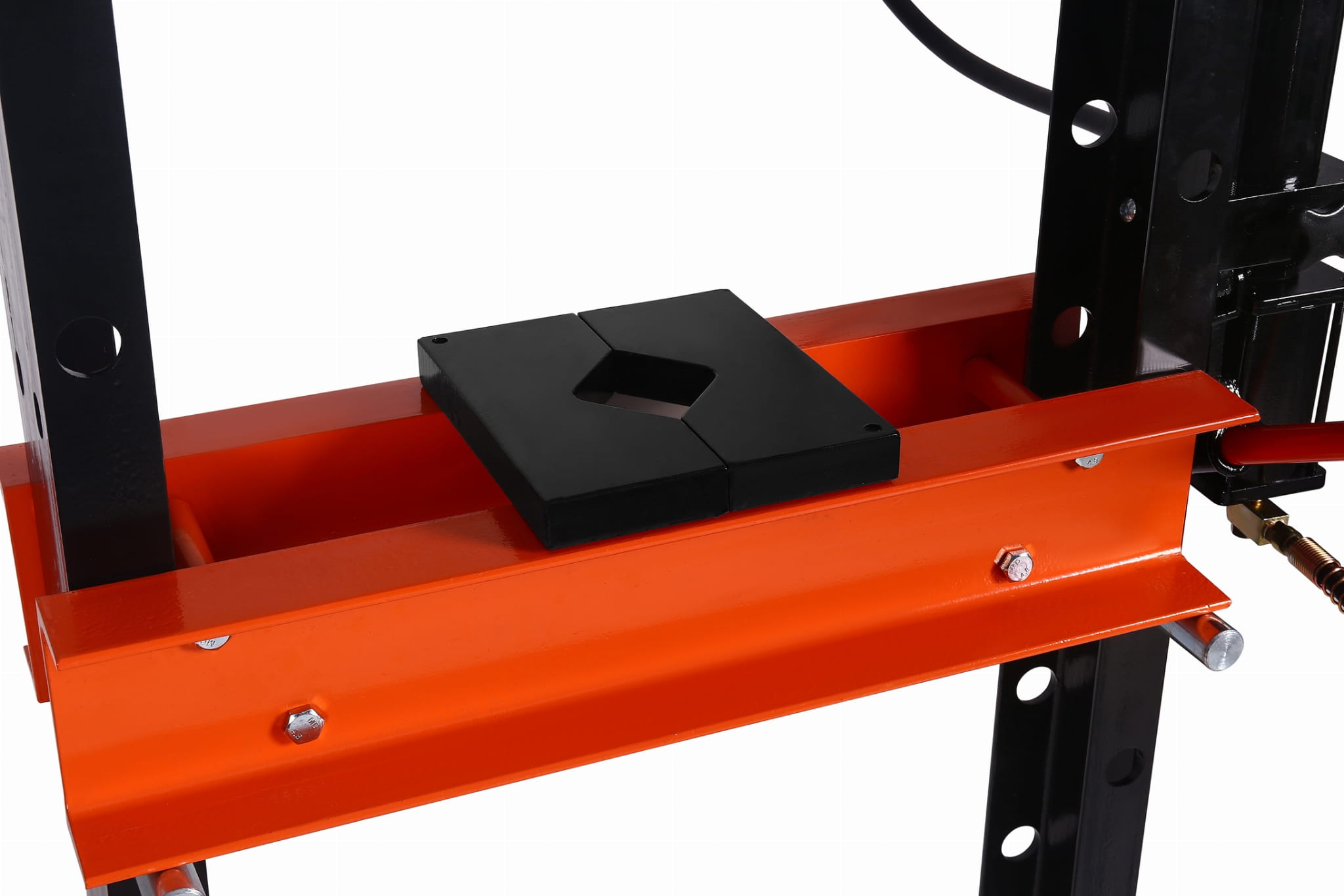 Tłok można przesuwać w lewo i w prawo wzdłuż belki, co pozwala na precyzyjne ustawienie punktu nacisku względem obrabianego elementu. Eliminuje konieczność przekładania detalu i skraca czas operacji przy nieregularnych kształtach.