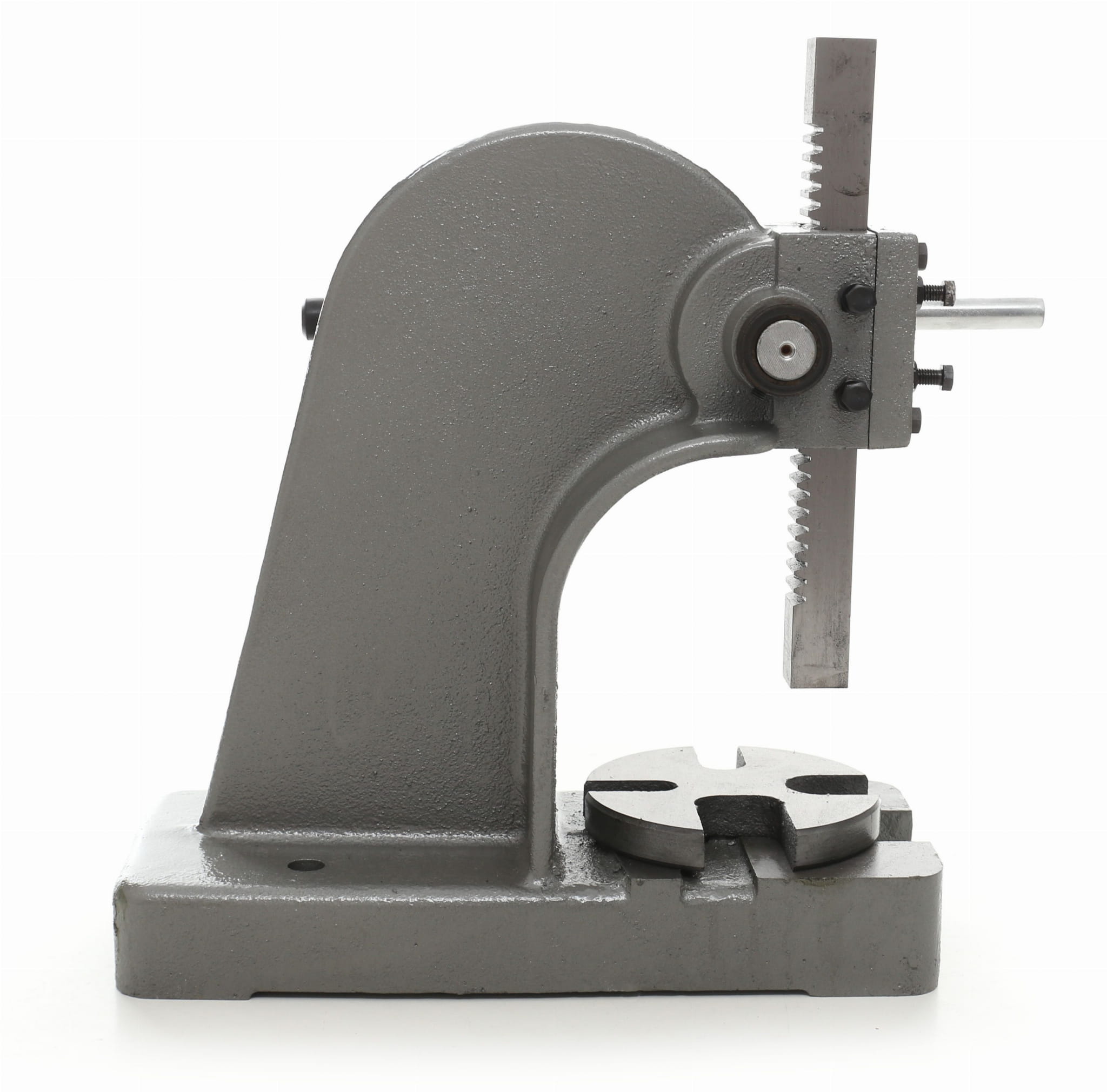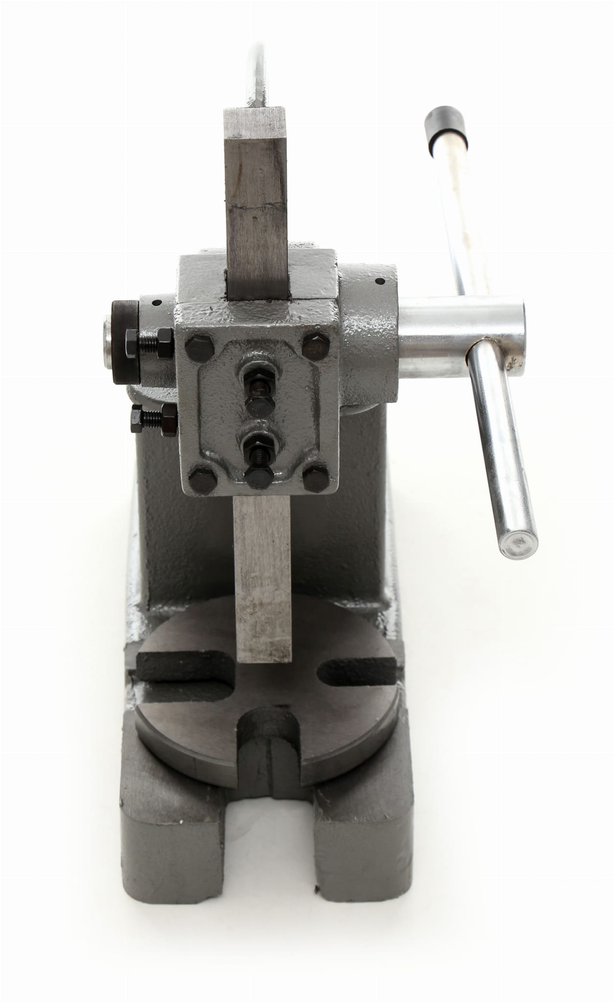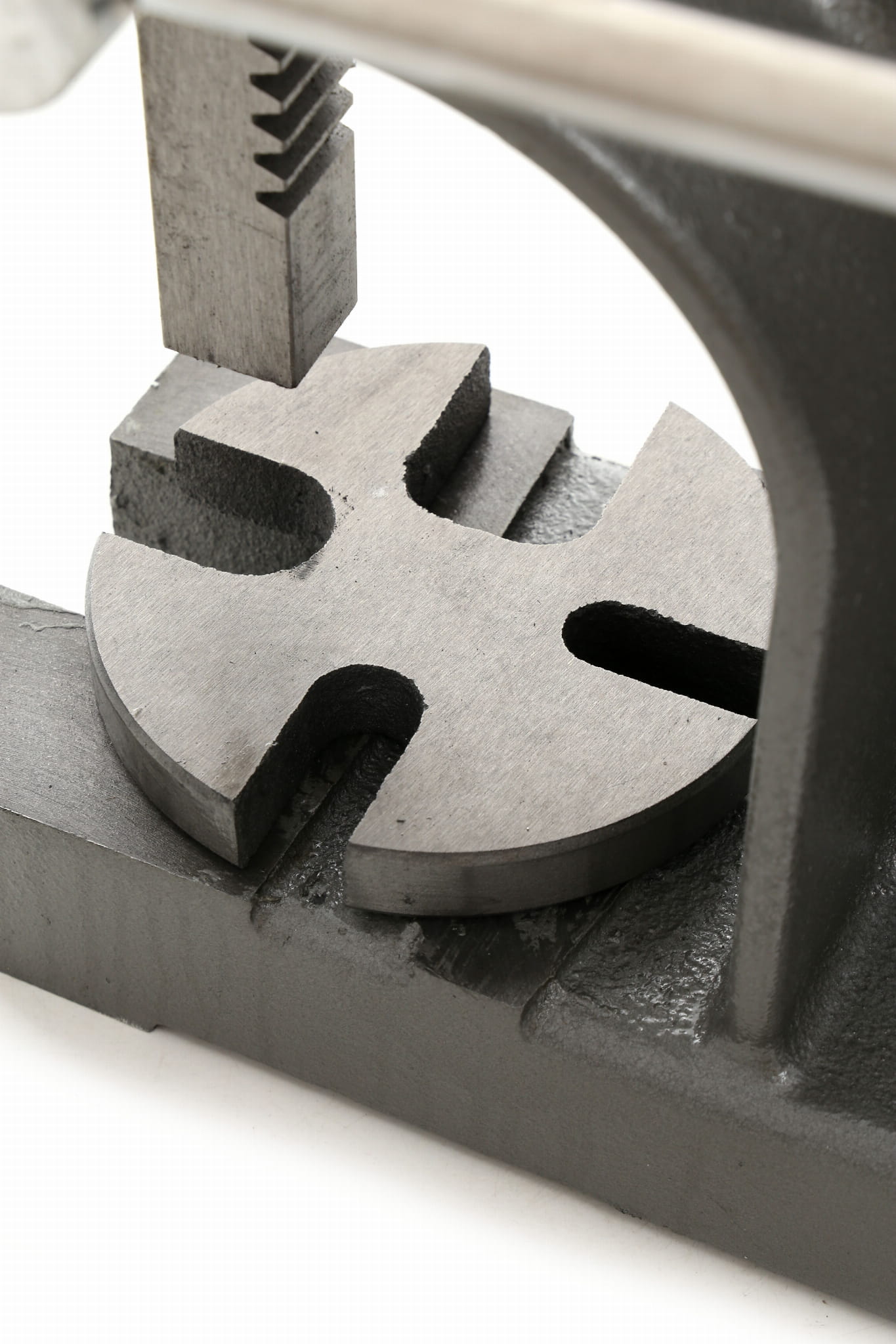 Rama oraz podstawa wykonane są ze stali konstrukcyjnej, co zapewnia sztywność niezbędną do przenoszenia sił roboczych bez odkształceń. Stabilna podstawa o wymiarach 5'' × 10,5'' (ok. 12,7 × 26,7 cm) ogranicza ryzyko przewrócenia się urządzenia podczas pracy.