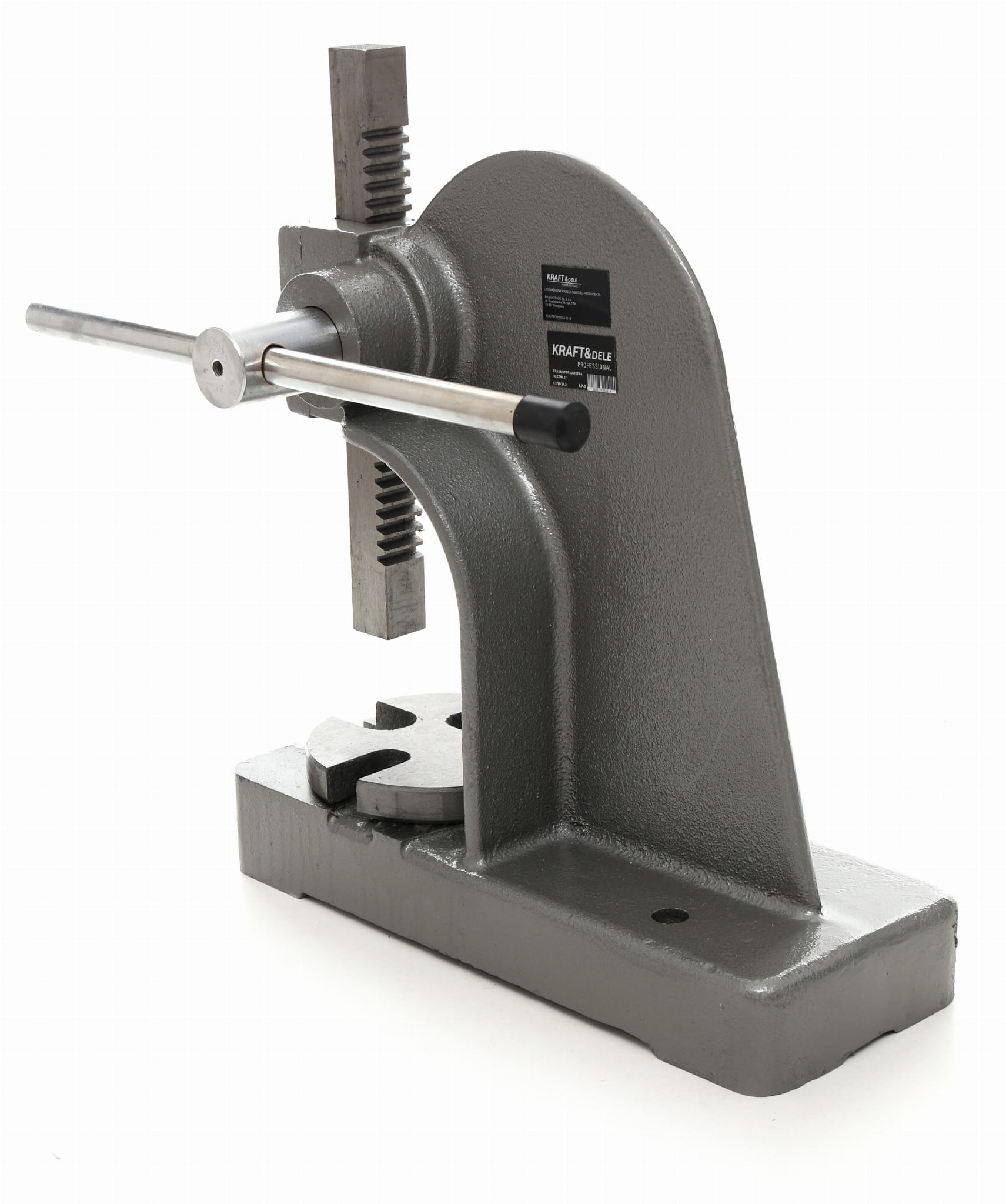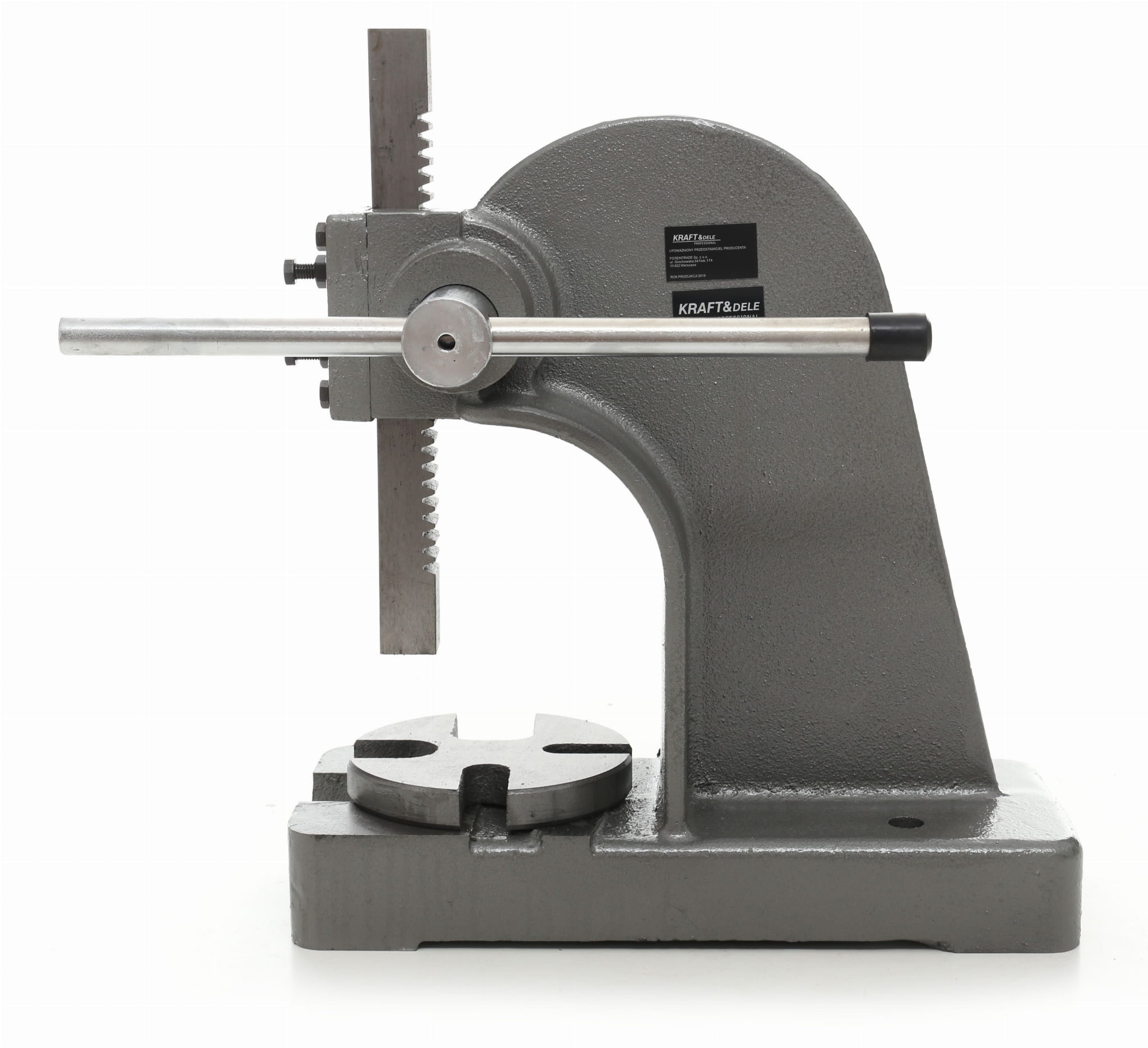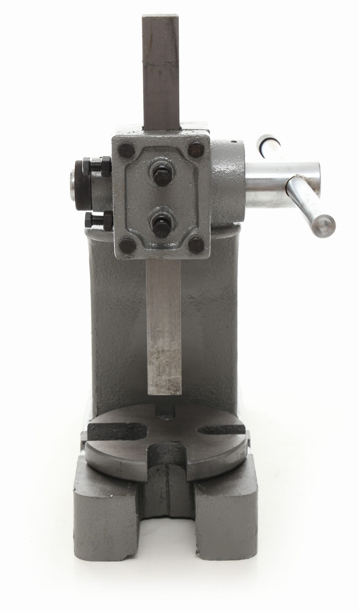 Całkowita wysokość 14'' (ok. 35,5 cm) i waga 16 kg sprawiają, że prasę można przechowywać na półce warsztatowej i przenosić bez użycia wózka. Maksymalna średnica robocza 8'' (ok. 20,3 cm) określa największy element, który mieści się między szczękami urządzenia.