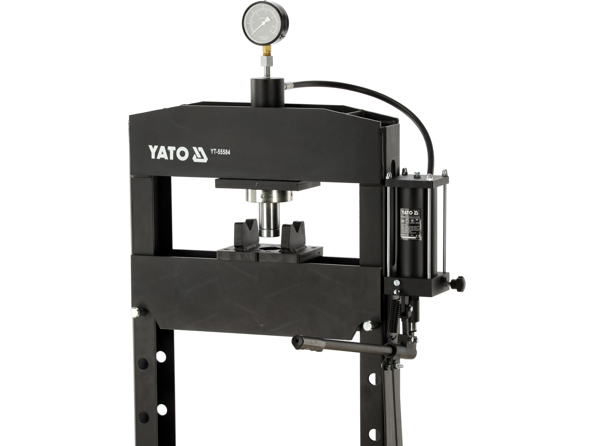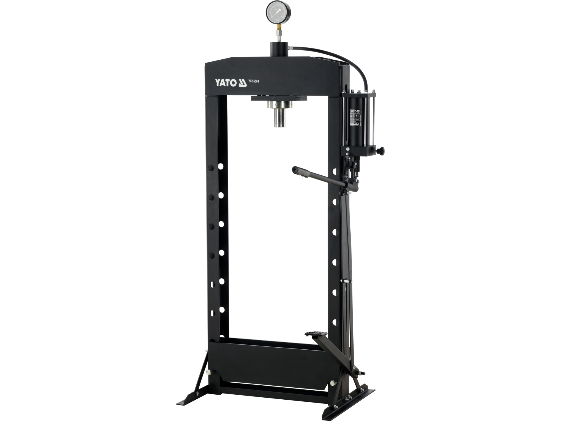 Prasa hydrauliczna warsztatowa o konstrukcji spawanej, przeznaczona do profesjonalnych zastosowań w warsztatach mechanicznych, narzędziowniach i działach utrzymania ruchu. Urządzenie umożliwia wprasowywanie i wyprasowywanie elementów, prostowanie komponentów metalowych oraz montaż i demontaż łożysk i tulei.