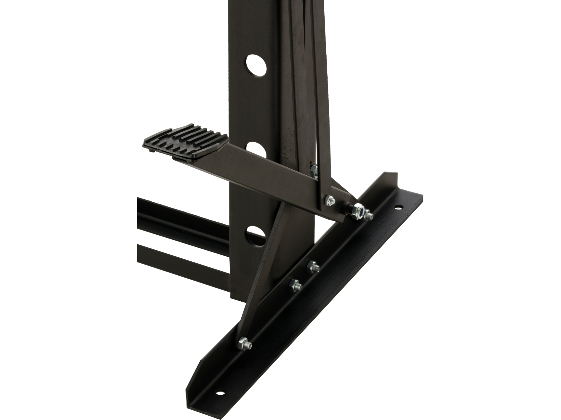 System sterowania nożnego pozwala na aktywację pompy hydraulicznej bez użycia rąk, co umożliwia precyzyjne pozycjonowanie obrabianego elementu obiema rękami podczas operacji prasowania. Zwiększa to bezpieczeństwo pracy i dokładność wykonywanych operacji.