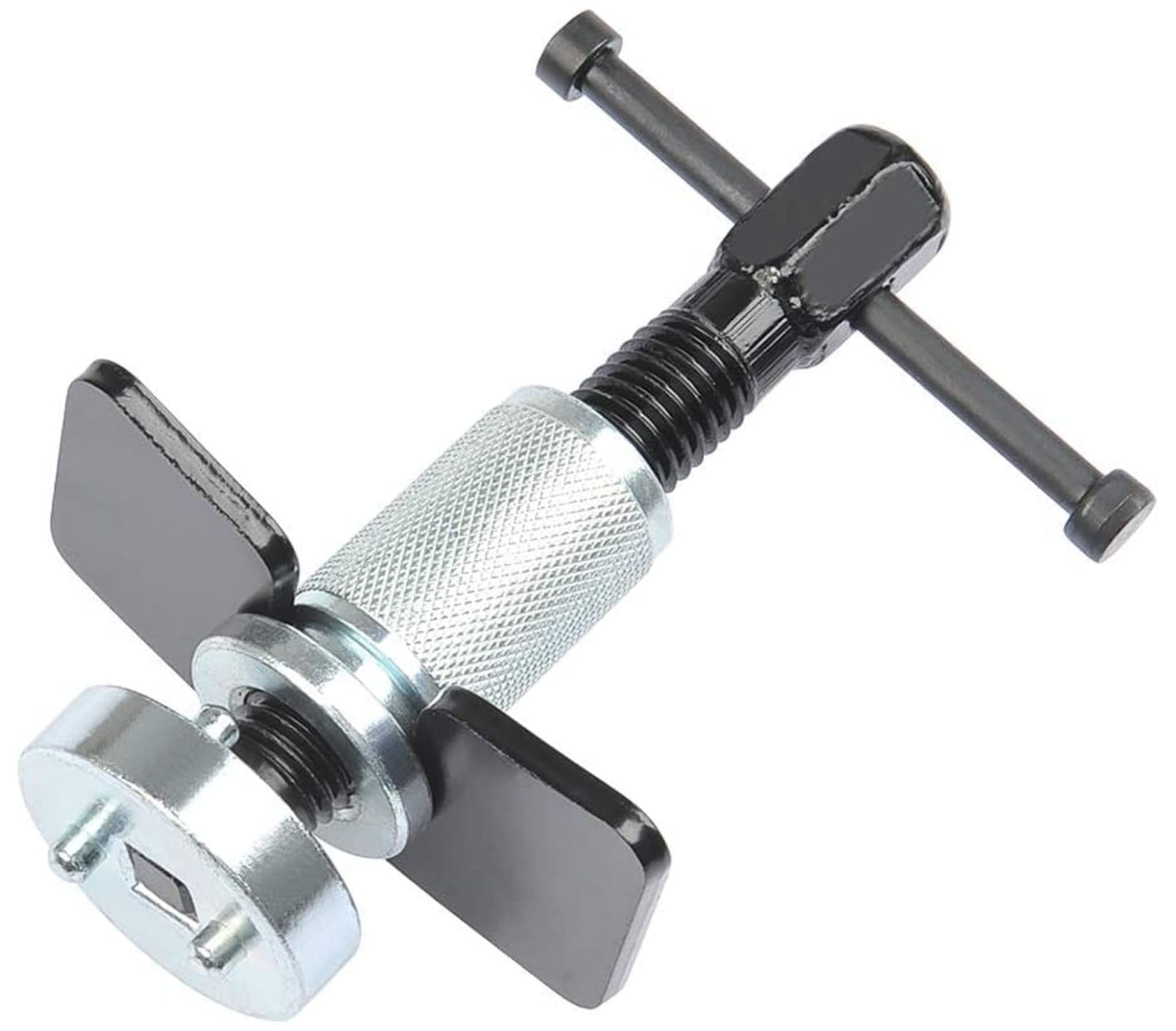 Narzędzie warsztatowe przeznaczone do wciskania tłoczków w zaciskach hamulców tarczowych podczas wymiany klocków lub serwisowania układu hamulcowego w samochodach osobowych i motocyklach. Wykonana ze stali chromowo-wanadowej z gwintowanym mechanizmem prawostronnym i odwracalnym adapterem.